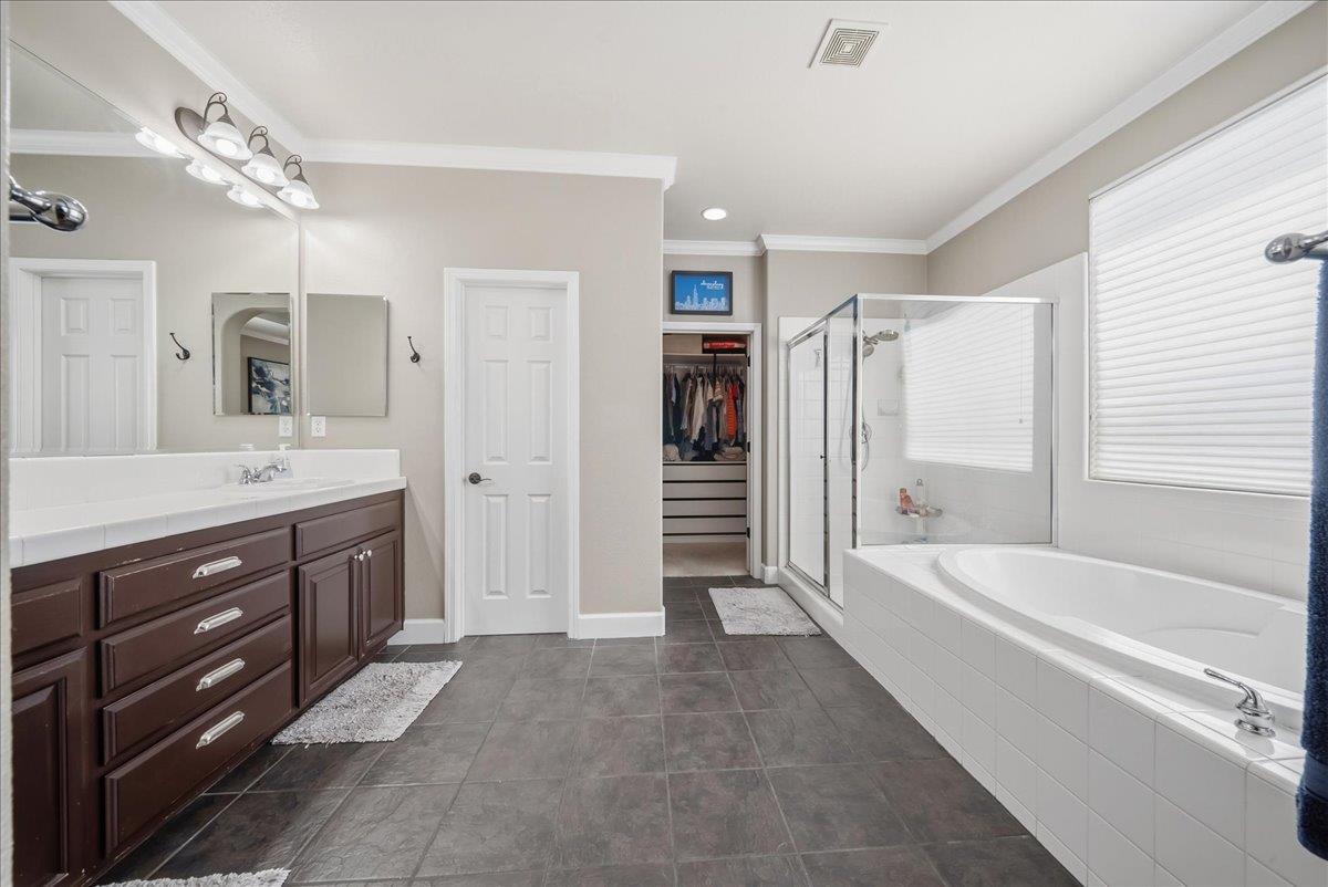 Just Listed! Fantastic home in the premier golf course community of Morgan Creek. This beautiful 4 bedroom 2.5 bathroom single story home with over 3,000 sq ft features a gourmet kitchen and is an entertainers dream with granite countertops, dual gas ovens, warming oven, kitchen island and built in refrigerator. There are high end features and finishes throughout the home including granite countertops and tile flooring as well as newer laminate flooring in the living and dining rooms and bedrooms and there are 3 fireplaces. The luxury primary suite is very spacious and inviting and there is a jetted bath tub and dual vanities in the primary bathroom suite. Step outside to the gorgeous backyard that is nearly a half acre and features a spacious covered patio, built in BBQ island and putting greens. Enjoy a round of golf at Morgan Creek Golf and Country Club. With great schools, a serene lake and beautiful walking trails this community has everything you could ask for. Hurry, this home wont last long!