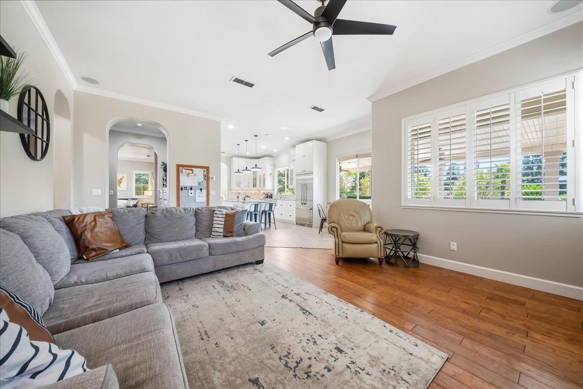 Discover refined single-story living at 8537 Bridgestone Crescent Road, an exceptional estate in Roseville offering 3,779 sq ft on a beautifully landscaped .60-acre lot. Thoughtfully refreshed with new interior paint, updated lighting, and ceiling fans, this home combines timeless design with modern comfort and style. The main residence features 3 spacious en suite bedrooms plus a private office, while the attached 1-bedroom, 1-bath casita with its own entrance is perfect for guests, multigenerational living, or a private retreat. Step into the beautiful formal living and dining combo with vaulted ceilings and large picturesque windows overlooking the pool and backyard, all to create an airy, elegant ambiance. The family room features a fireplace. The tile floors throughout have been refreshed with new grout for a polished, modern look. At the heart of the home, the gourmet kitchen boasts stainless steel appliances, double ovens, a built-in wine refrigerator, and a walk-in pantry, flowing seamlessly into spacious living areas designed for both entertaining and everyday living. The primary suite offers a sitting room and a spa-inspired bath with direct access to the backyard retreat. Step outside to your private resort: a solar-heated saltwater pool, outdoor kitchen, dining area, charming pergola, vineyard, and numerous producing fruit trees, all set amid lush landscaping and serene courtyard spaces. The side yard offers plenty of space for boat or RV parking. Practical features include a large laundry room with ample storage and a 3-car garage, providing both convenience and functionality. A rare offering that blends sophistication, comfort, and resort-style living, with every bedroom en suite for ultimate privacy, in one of Rosevilles most desirable settings. This estate is truly move-in ready and designed to delight every lifestyle. Close to shopping, Napa and Tahoe makes this a perfect spot to call home