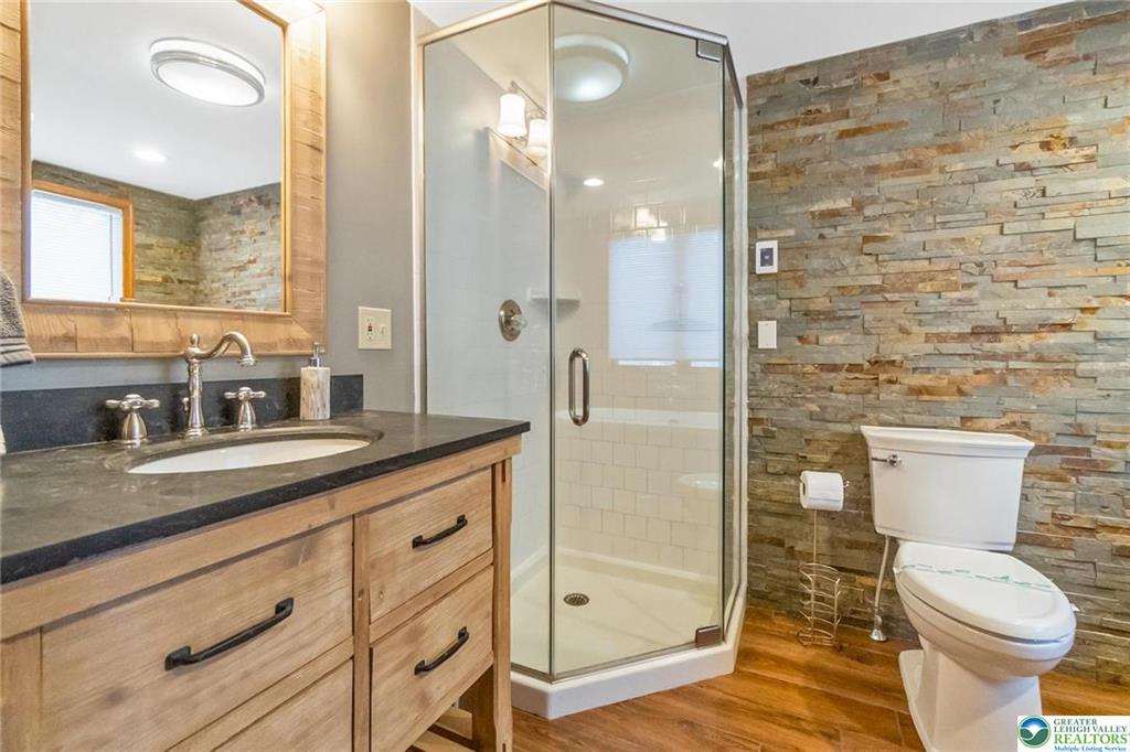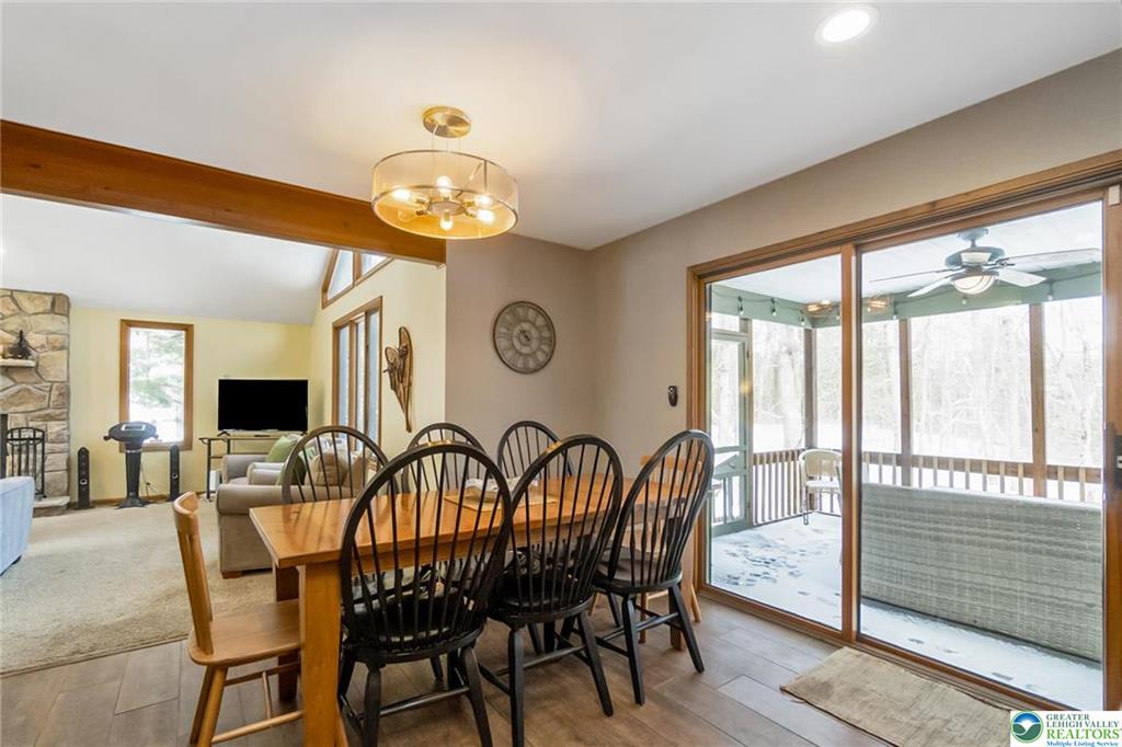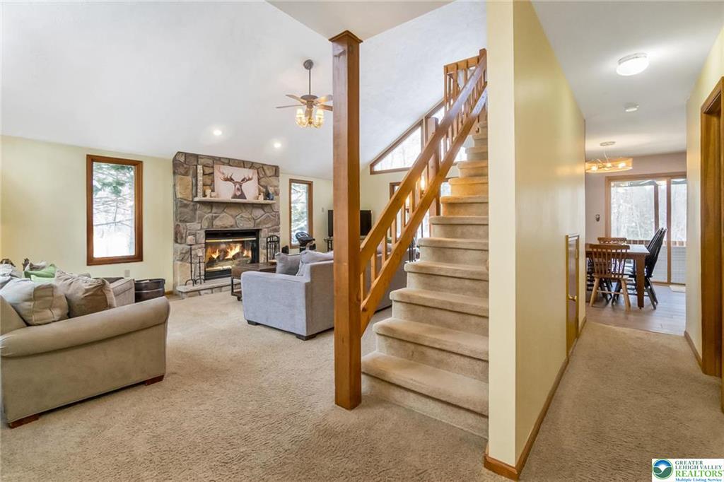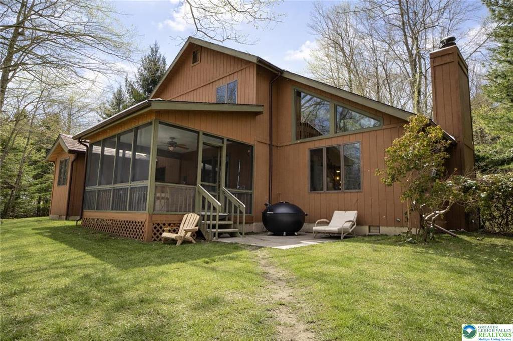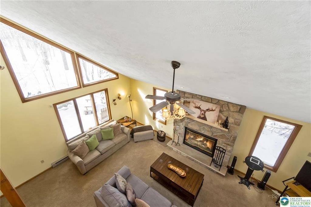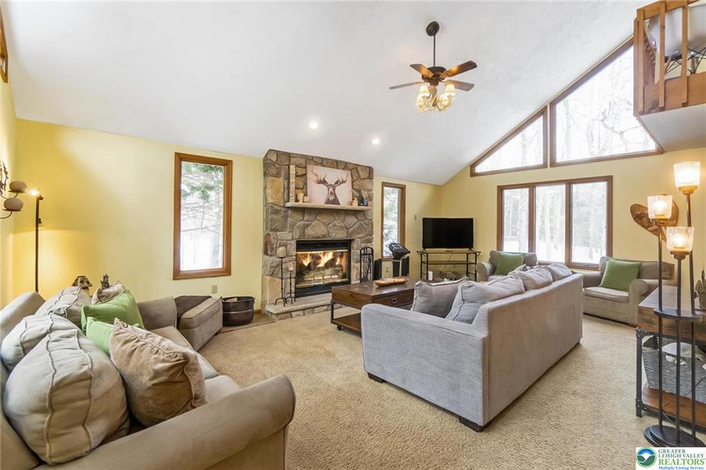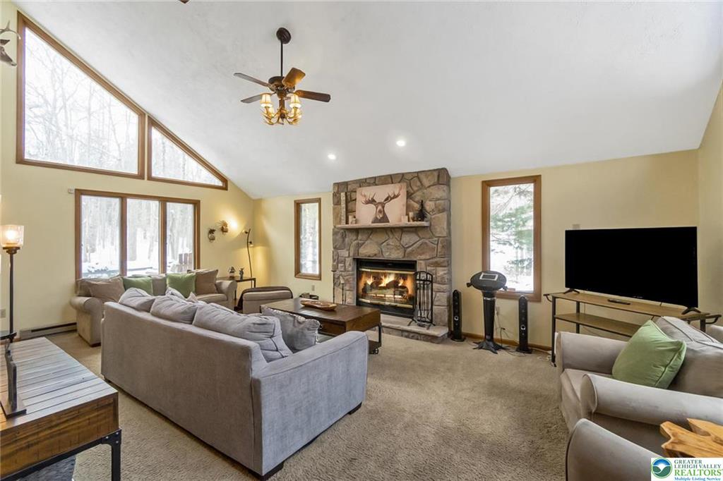 RESORT LIVING AT ITS FINEST! Immaculate Lake Harmony home offers perfect Year-Round Vacation Getaway, STR or Full-time home. Immaculate 4 Bedroom, 3 full Bath Furnished Contemporary Home on almost 2 private acres in Split Rock Resort. Custom Alder Cabinet Chefs Kitchen with loads of counter-space, Granite counters, gourmet island, coffee station, dual oven, pantry and radiant flooring. Dining area sliders lead to screened in porch for family cookouts & wildlife watching. Bright 2 Story Family room, has a wood burning fireplace perfect for cozy movie nights. 1st floor Primary Bedroom includes its own gas fireplace and spa like Bath w/ soaker tub, glass shower & radiant heat floors. Additional 1st floor large Bedroom with its own Bath & separate water closet. 2nd floor Loft is fully stocked Game-room. 2 Upper Level bedrooms, one with 2 bunks provide accommodations for large families and their guests. Updated Bath with double sinks complete second level. Roast marshmallows around the fire-pit in the secluded Park-Like yard. 1st floor laundry. New Roof 2021. COMMUNITY offers 2 SKI resorts, LAKE [motor boat friendly], several RESTAURANTS, 2 GOLF Courses, INDOOR WATERPARK, MOVIE THEATER, arcade, & bowling. Nearby: Pocono Raceway, Outlet malls, Mount Airy Casino, Hiking, & Hickory Run State park. Come and Enjoy the GOOD LIFE!