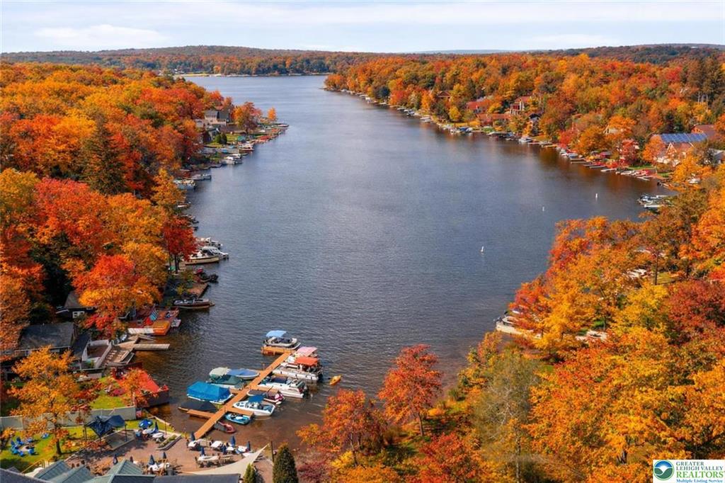 Views for days! Located right on Lake Harmony. Here is a unique opportunity to own a multi-family property. This 6 bedroom home can be used for one big gathering of family and friends, or you can use the lower lever and upper level independently of one another. The main level upstairs with 3BR 1BA has an open floor plan living, dining and kitchen, with 2 sliders to the deck to take in the panoramic lake view! The lower level also with 3BR 1BA has its own kitchen with expansive deck. As a bonus, there is a detached finished bungalow studio with a kitchenette and bathroom. Bring your powerboat and park it at your very own dock! Convenient detached garage is perfect for storing bikes and kayaks. Short term rental friendly township! Big Boulder and Jack Frost Ski Areas nearby!