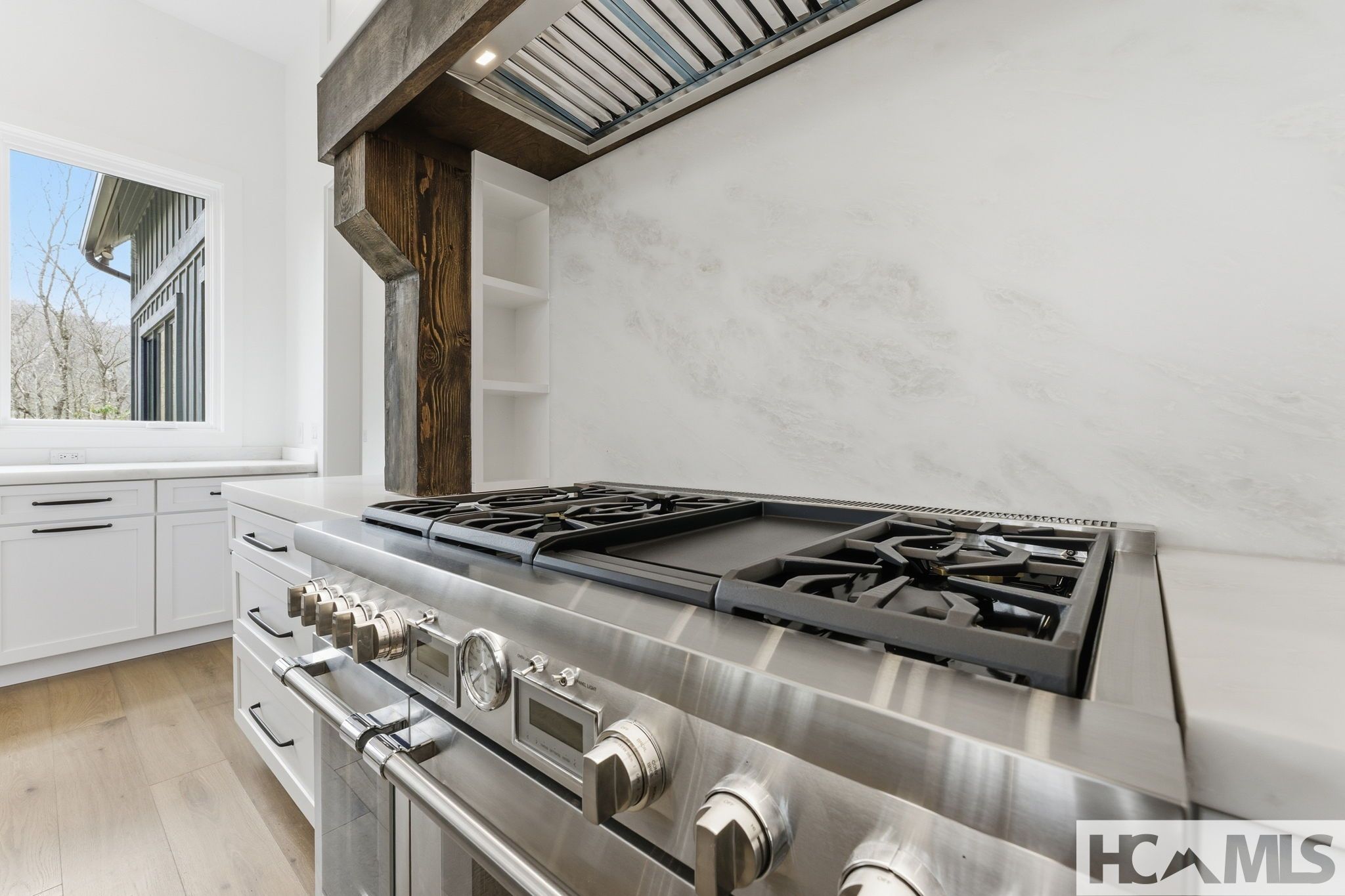 Gorgeous brick ranch w/ main level garage. Spectacular in the trees feeling w/ large windows. Dramatic ceilings, large rooms! Cooks kitchen w/ granite, SS and island. Great neighborhood.