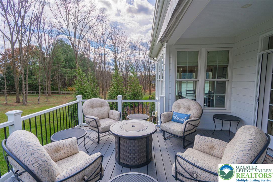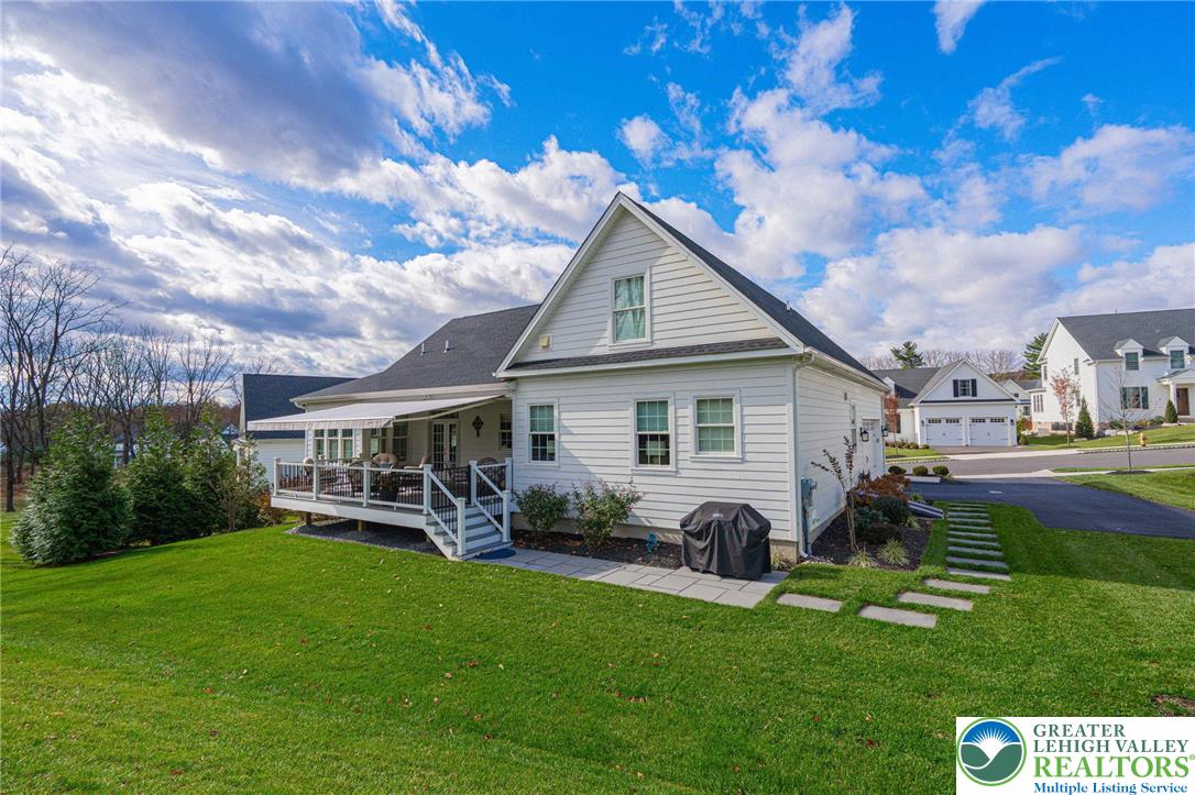 Experience refined living in this exceptional residence within one of the areas most exclusive boutique active-adult gated communities - The Cottages at Old Saucon. Crafted by a respected local custom builder known for including elevated, quality finishes as standard - this home, aptly named The Grace, seamlessly blends timeless elegance with thoughtful, high-end design. Youll enjoy the sunlit interior, enhanced by professionally curated window treatments and a warm and inviting upgraded kitchen, designed to impress. What elevates this home into a rare offering, however, is its premier lot. With a lush green lawn and mature privacy trees, the backyard offers a level of tranquility that is hard to find. An awning-covered rear deck with stairs to a lower bluestone patio were smart additions that offer places to fully relax and appreciate this quiet, scenic and restorative setting. Practical luxuries abound, including a second floor 2-bedroom-full-bath loft for guests, a whole-house generator for peace of mind, and an expanded new driveway with added 12 x 12 parking area. The location is a bonus, with restaurants and shopping nearby, and just around the corner from Saucon Valley Country Club - globally recognized for its elite golf pedigree and 850 acres of pristine grounds. This envied location, offers a home for discerning buyers seeking luxury and privacy, with the added convenience and freedom of HOA benefits like lawn and landscape care, snow removal, and the like. Take advantage of this rare opportunity to own one of this communitys most desirable homes.