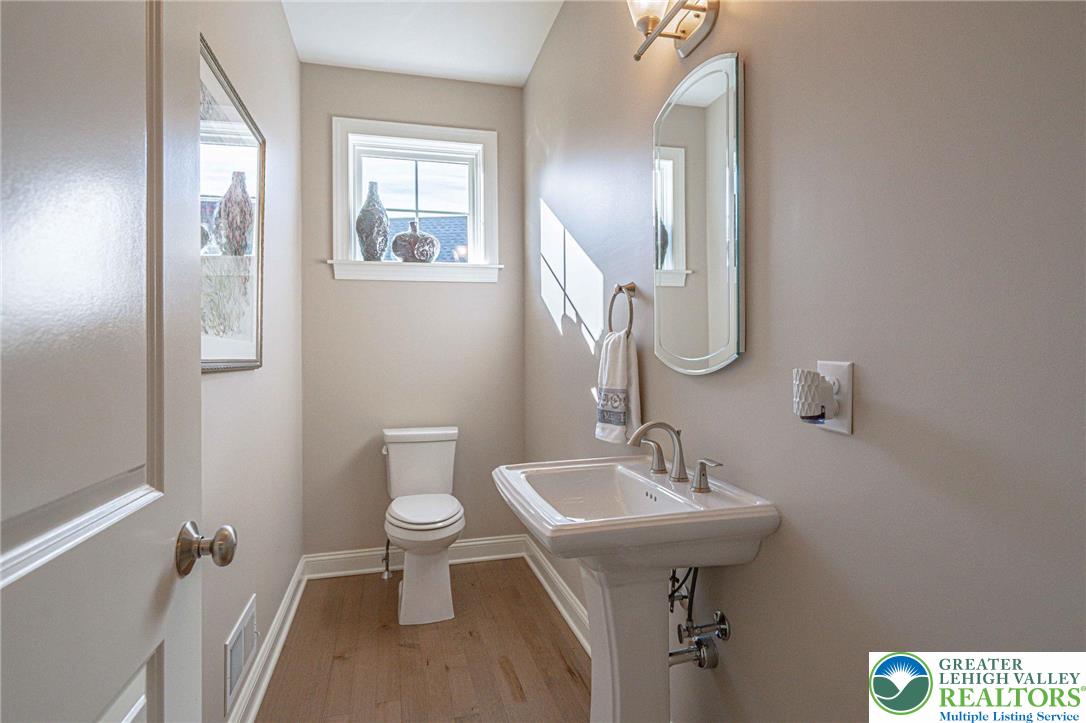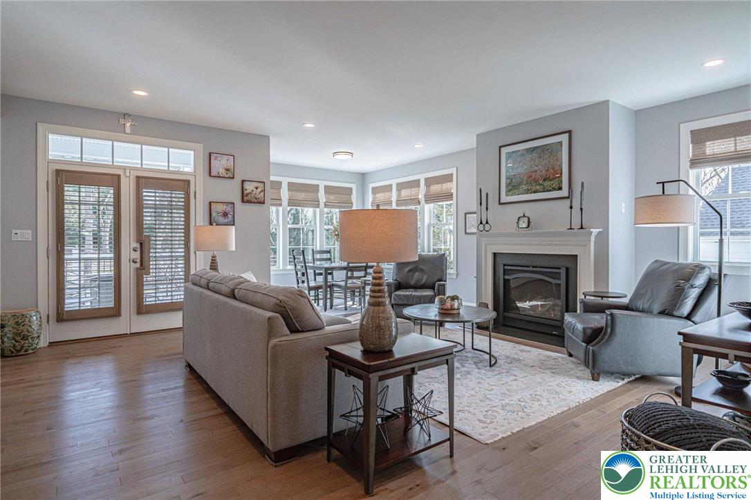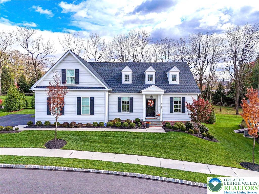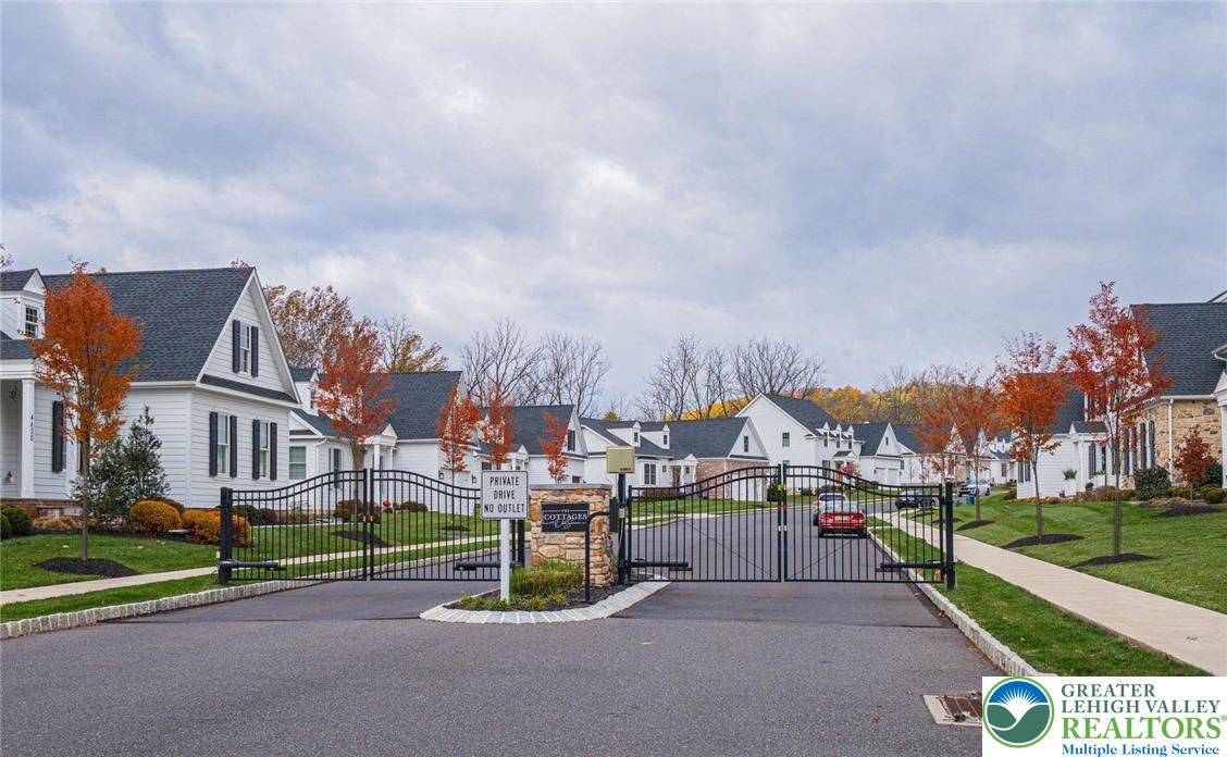 Welcome to The Cottages at Old Saucon, an exclusive 55 GATED COMMUNITY directly across from Saucon Valley Country Club. This stunning single detached home, nestled in the COMPLETED PHASE 1, offers 2,831 sq ft of meticulously designed living space, featuring a FIRST-FLOOR PRIMARY SUITE, elegant first-floor office, and a sun-drenched sunroom perfect for relaxation. The expansive GOURMET KITCHEN showcases QUARTZ COUNTERTOPS, premium finishes, and natural gas cooking, flowing seamlessly into the OPEN CONCEPT LIVING and great room with a stately gas fireplace, ideal for hosting family and friends. Rich hardwood floors throughout the main level adds timeless elegance, while the BLUESTONE PATIO provides a serene outdoor retreat for morning coffee or evening gatherings. Upstairs, enjoy three generously sized bedrooms for guests along with additional baths offering comfort, privacy, and ABUNDANT SPACE for personalization. A full unfinished basement offers endless potential for future expansion or recreational use. The homes exterior, wrapped with JAMES HARDIE fiber cement siding, exudes curb appeal and LOW-MAINTENANCE sophistication. Experience a carefree, resort-style lifestyle with a 395/month HOA, covering lawn care, grass cutting, snow removal, trash, and recycling. Just minutes from the Promenade Shops, fine dining, parks, and major routes, this exceptional home combines luxury, convenience, and an engaging ACTIVE LIFESTYLE in one of Bethlehems most sought-after communities.