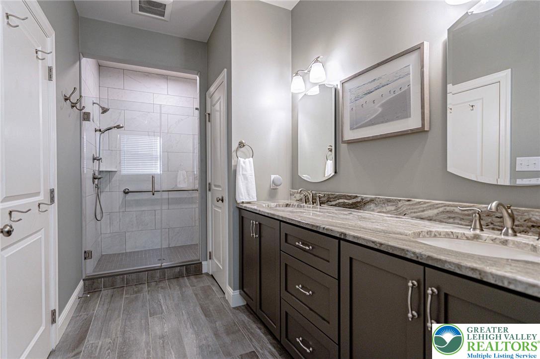 Stever Mills is more than a neighborhood its a private retreat for those who value craftsmanship, privacy, and ease. Built by Blair Custom Homes, this carriage residence blends timeless architecture with elevated finishes, creating a home that feels both refined and welcoming. Inside, natural light and rich textures set the tone. Stone, wood, & custom millwork define an expansive open-concept design where the chefs kitchen flows seamlessly into the dining & living areas a connected space perfect for both entertaining & everyday living. A sunroom just beyond offers a peaceful spot to start or end your day. The first-floor primary suite provides true one-level living. Upstairs, spacious bedrooms & flexible loft areas accommodate guests, hobbies, or work-from-home needs. The finished walk-out lower level expands the possibilities ideal for entertaining, multi-generational living, fitness, or a media retreat and is already roughed-in for a three-stop elevator. Brick patios and a fenced yard extend the living space outdoors, all with exterior maintenance handled for you. Minutes from I-78, Saucon Valley Country Club, the Promenade Shops, Lehigh University, Saucon Valley Rail Trail, downtown Hellertown & Bethlehem, this is luxury living with freedom built in. At Stever Mills, you dont just own a beautiful home you gain the simplicity to truly enjoy it. *BUY WITH CONFIDENCEPRE-LISTING HOME INSPECTION AVAILABLE * 3D MATTERPORT PLUS INTERACTIVE FLOOR PLAN AVAILABLE, TOO*