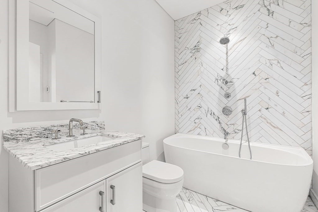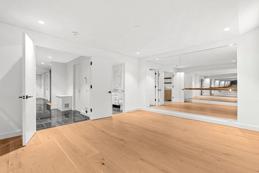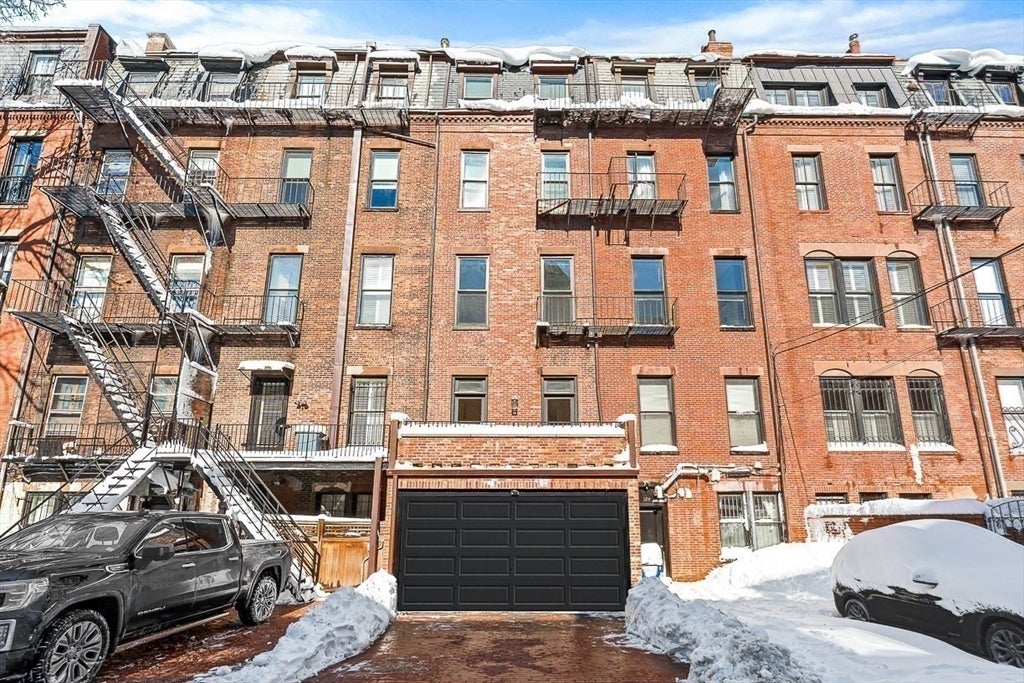Welcome to 126 Marlborough Street, a luxurious single family residence that combines a historic pedigree with modern livability, privacy, and ideal positioning mid-block between Clarendon and Dartmouth Streets. This turnkey nearly 5,000 sq. ft. four bedroom row house features an attached garage plus driveway parking, glass elevator to access all five floors, two south-facing living spaces with gas fireplaces and grand 11 ceilings, a formal dining room with auxiliary kitchen, and primary kitchen with Gaggenau appliances, front-facing oriel windows, and dining area. The floor-through primary suite offers a gas fireplace, two walk-in wardrobe rooms, and two full marble baths with heated floors and spa-inspired wet room. Outdoor amenities include a full-length roof deck under the Boston skyline with outdoor kitchen and gas fire pit, plus a terrace off the living room. A one-of-a-kind property, 126 Marlborough Street is tranquil yet central to all the Back Bay neighborhood has to offer.