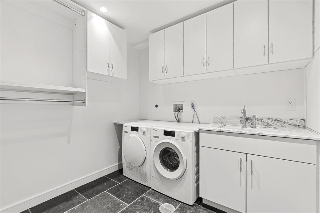 A Magnificent Blend of Victorian Grandeur and Modern Luxury on the Charles River. This exceptional 2,600 sq ft full-floor residence is a rare offering in one of Bostons most storied brownstones, designed by renowned architects Peabody & Stearns in the 1870s for developer Henry Bigelow Williams. Unit 4 preserves the elegance of the Gilded Age while delivering a private, modern sanctuary at the heart of the Back Bay. Accessed by a private elevator, the home opens to a marble foyer and expansive living space with soaring ceilings, original crown moldings, hand-carved fireplace mantels, and rich hardwood floors. Four hidden doors, including one that secures the primary suite as a discreet safe room, add mystery and utility. Four walk-in closets provide unparalleled storage. The newly renovated chefs kitchen is anchored by a statement La Cornue French range and refined Italian porcelain countertops. Custom cabinetry and a large center island create both elegance and efficiency. Two-bedroom suites offer spa-level comfort; the primary includes a double shower, and vanity wrapped in marble. At the rear, catch sunsets on the TV lounge framed by arched windows leads seamlessly to a private terrace overlooking the Charles River-a true rarity in the city. Ideal for entertaining or private relaxation, it offers a front-row seat to seasonal views and river life. Additional features include central air, smart-home controls, in-unit laundry, and deeded parking. Moments from the Esplanade, Newbury Street, and Copley Square, this residence delivers refined living in Bostons most iconic neighborhood.