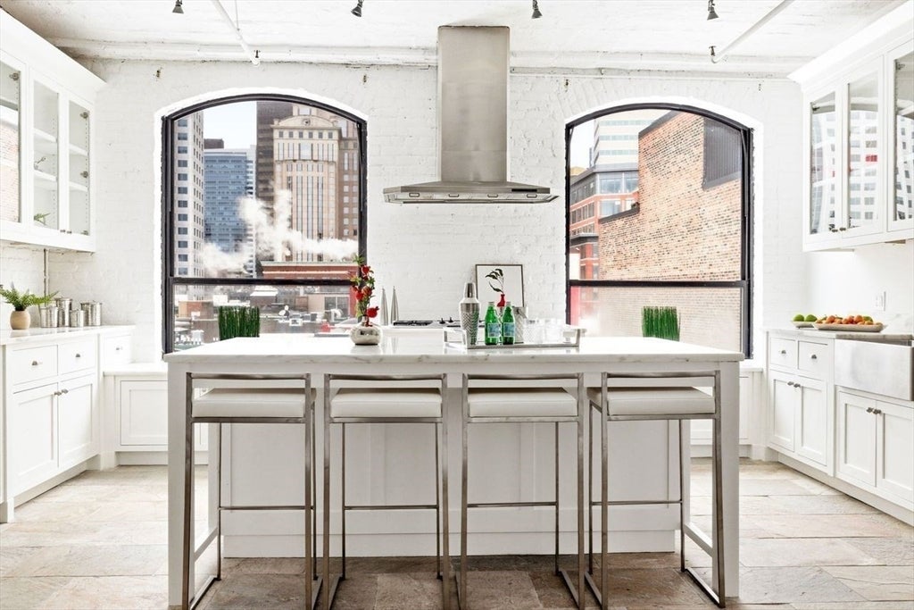 RARE, FULLY UPDATED LUXURY LOFT-STYLE PENTHOUSE WITH PRIVATE 1000 SQ FT ROOF DECK located in the heart of Boston, just moments to SOUTH STATION! The private roof deck with sweeping views IS THE BEST YOUVE SEEN. This Penthouse unit checks EVERY box for the discerning buyer: impressive level of detail throughout, soaring ceilings, an abundance of natural light, open-flow, and BIG windows. But the biggest box this unit checks is that it has CHARACTER! Nothing cookie-cutter. The updated CHEFS Kitchen stuns -complete with gleaming marble countertops, custom cabinetry, stainless steel appliances, and pure elegance. The Dining area, with exposed brick Gallery wall, flows into the large Living Room, with a cozy gas fireplace, making this the perfect spot to entertain guests or unwind after a busy day. Two generously sized bedrooms, including an en-suite primary bedroom w/ updated bath. A true DREAM HOME just moments to EVERYTHING Boston has to offer!