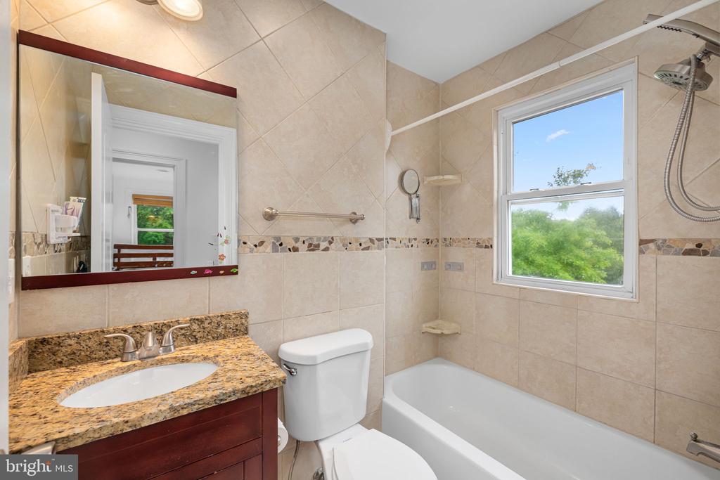 Step into the timeless charm of 4236 River Road, a beautifully restored 1918 Arts and Crafts bungalow nestled just two blocks from the Tenleytown-AU METRO station. This captivating home in the sought-after American University Park neighborhood offers a unique opportunity to own a piece of history while enjoying easy access to local shops, restaurants, and parks. Updated walkways lead through the temporally blooming front garden to a welcoming covered entry portico. Inside, discover a seamless blend of original character and thoughtful modern updates. The living room offers a warm and inviting ambiance perfect for both relaxed evenings and lively gatherings with friends. Gleaming original hardwood floors flow into a sun-drenched sunroom boasting a vaulted bead board ceiling. Conveniently located on the main level is an updated full bathroom and a charming first-floor bedroom. The timeless kitchen features classic Shaker-style cabinets, elegant dark synthetic stone countertops, subway-tiled backsplash, and bright white appliances, while the cork flooring adds a touch of comfort. The dining room provides access to a stunning screened-in porch, perfect for enjoying morning coffee, an intimate dinner, or simply observing the local birdlife. The serene primary bedroom suite is located on the second floor. Exquisite woodwork, built-in bookcases, skylight, and thoughtfully integrated dormer windows create a tranquil retreat. The cheerfully renovated second-level bathroom features a spa shower with a custom-made glass enclosure and a luxurious heated towel rack. Granite steps, repurposed from the U.S. Capitol, add a touch of history to the kitchen-side entrance. Unique wrought iron handrails by Richmond metal artist Andrew White guide the transition, a bespoke artistic feature. Outside, the established garden, designed by DCA Landscape Architects, offers a lovely outdoor escape. This exceptional property also boasts a detached 1-car garage with a 240-volt outlet for EV charging. Fencing encloses the property, which also includes an additional off-street parking space accessible from the alley. Enjoy a true sense of community in this highly sought-after neighborhood, with all the perks of city living at your fingertips. This house is one of a kind. Welcome Home!