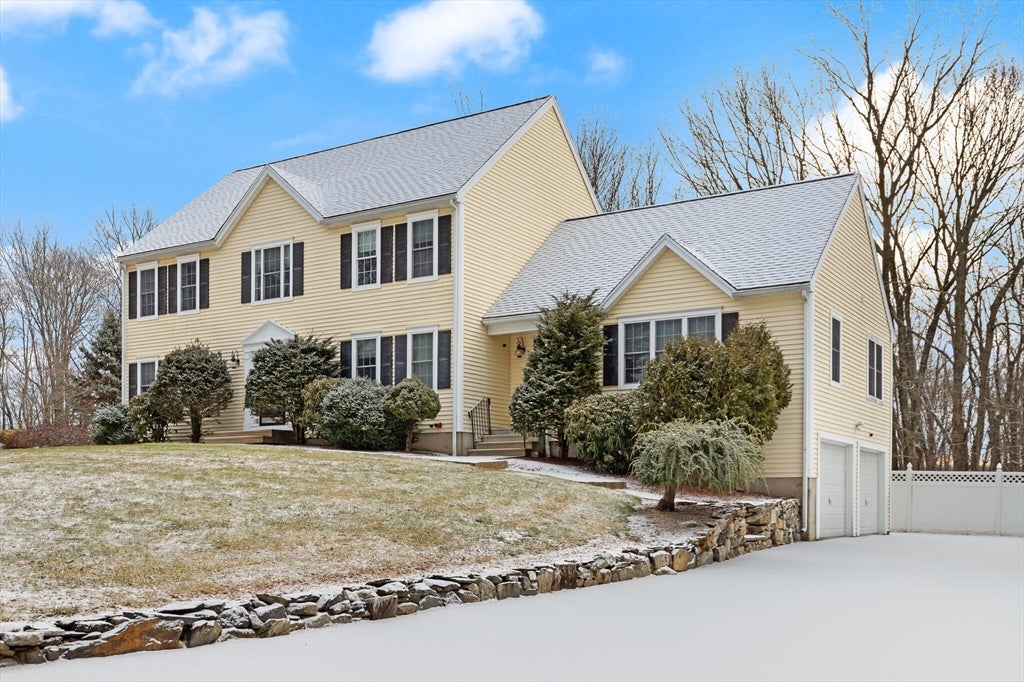 Enjoy year-round waterfront living in this beautifully updated Colonial overlooking Moulton Pond. Featuring hardwood floors throughout, the home includes a renovated kitchen with stainless steel appliances, granite countertops, and soft-close cabinetry. The open first floor connects the kitchen, dining, and family room to a large deck with water views. Upstairs offers a spacious primary suite with two walk-in closets and private bath, plus two additional bedrooms and full bath. The walkout lower level includes another bedroom and full bath. Outside, enjoy a patio with pergola, direct pond access for kayaking or fishing, and a two-car garage with storage above.