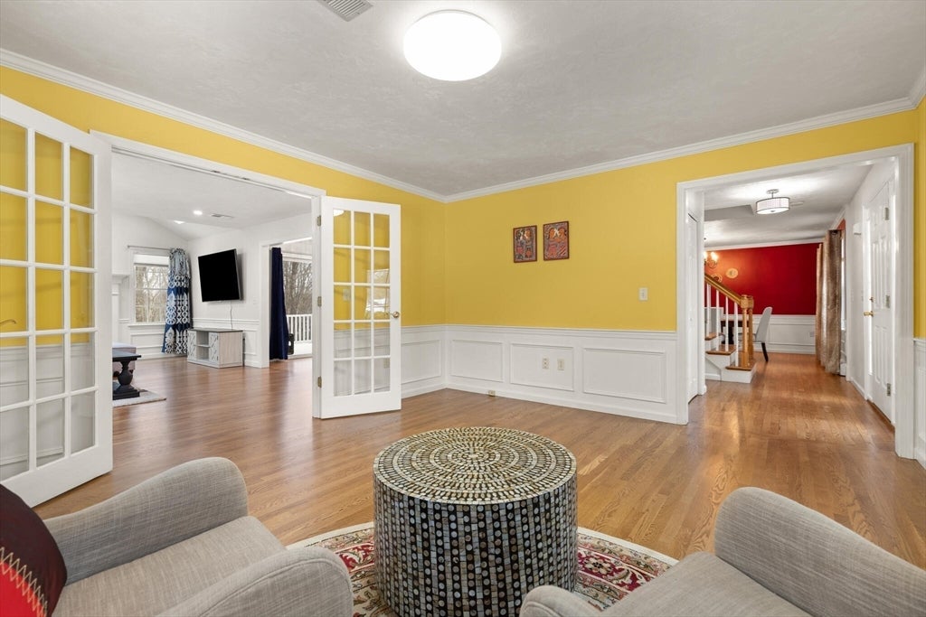 Enjoy year-round waterfront living in this beautifully updated Colonial overlooking Moulton Pond. Featuring hardwood floors throughout, the home includes a renovated kitchen with stainless steel appliances, granite countertops, and soft-close cabinetry. The open first floor connects the kitchen, dining, and family room to a large deck with water views.