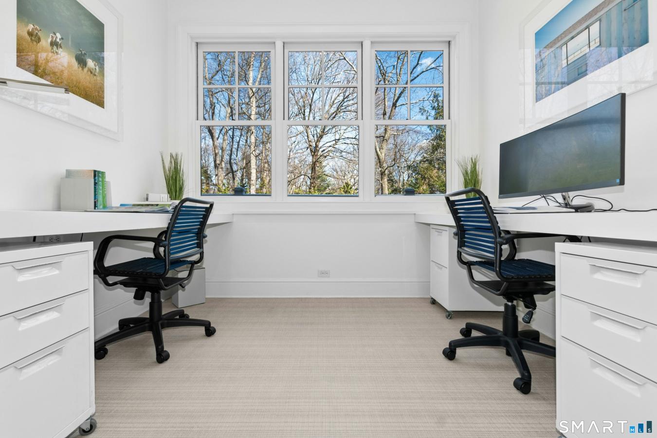 New construction and ready for 2026! On a coveted Darien cul-de-sac, this modern colonial boasts 6500sf of elegance and comfort. Step through the welcoming foyer, complete with a coat room and powder room, and into a spacious, light-flooded living room, perfect for gatherings that stretch into the evening. The custom kitchen is a true centerpiece, with a grand stone island, Thermador appliances, an oversized range, and abundant cabinetry. Surrounded by windows, the sunlit breakfast room flows effortlessly to the kitchen/great room, where a gas fireplace and beamed ceiling create warmth and character and flow out to an huge deck overlooking 1.2 private acres. A first-floor office with full bath offers flexibility for work, guests, or a quiet retreat. Everyday ease continues with a mudroom, half bath with stunning, floating quartz vanity, and an attached two-car garage. Upstairs, the primary suite is a serene escape with vaulted ceilings, a walk-in closet, and a private balcony overlooking the lush and private yard. Three additional en-suite bedrooms each feature custom walk-in closets, blending function with elegance. The partially finished third floor and lower level invite endless possibilities - a home gym, playroom, creative spaces, etc. This home has privacy and space for all and is only minutes from town, shops, the beach, golf, the train and all amenities. A new home for the new year!