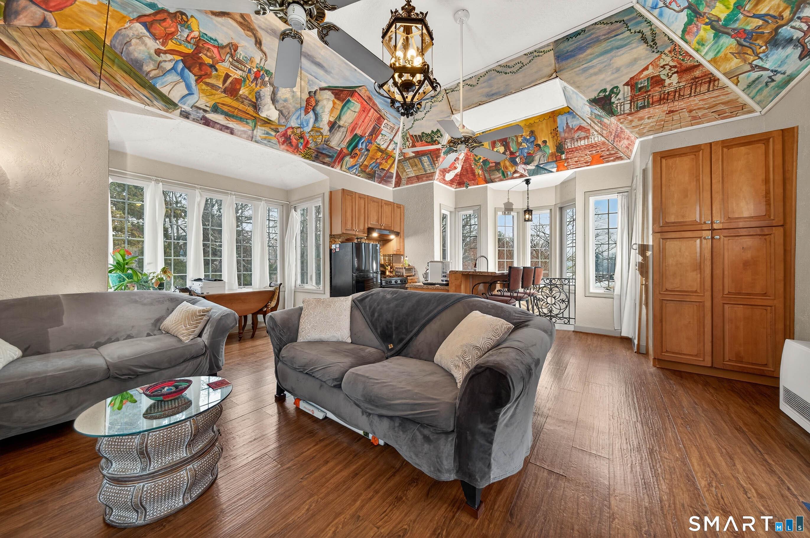 Welcome to 17 Bittersweet Way, located on a peaceful cul-de-sac in historic Stonington, Connecticut. This exquisite custom-built Colonial, constructed in 2006, sits on just over three acres and offers nearly 4,000 square feet of living space across three floors. The first floor features a spacious, inviting living room complete with a gas fireplace and large Thermopane windows that fill the home with natural light. The open kitchen boasts a generous center island, a Sub-Zero refrigerator, a Wolf cooktop, and other modern appliances-perfect for everyday living and entertaining. Adjacent to the kitchen is a wine storage and dry bar area that leads into the main dining room. Beautiful wood flooring flows throughout, while the southern-facing exposure ensures abundant sunlight in every room. Upstairs, the large and elegant primary suite showcases a gas fireplace, two walk-in closets, and a full bath with a large, spa-like shower featuring a rain showerhead, along with separate sink and toilet areas. This level also includes two additional bedrooms, a full bath, and a convenient laundry room equipped with a built-in fold-out ironing board. A spacious family room provides an ideal setting for reading, watching television, or simply relaxing. The third floor offers exceptional flexibility. With ample space, natural light, and a full bath, it can function as a guest or in-law suite, a spacious home office, and/or a workout studio.