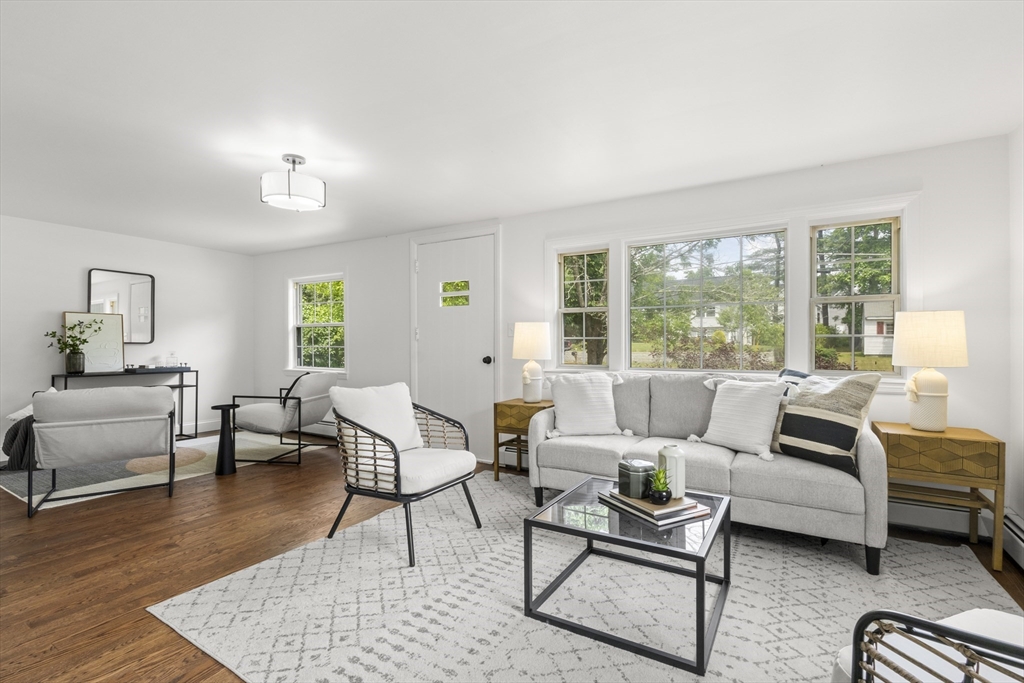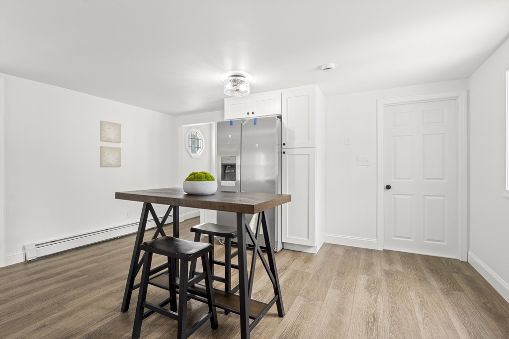 Welcome to this beautifully renovated single-family home in desirable Easton, MA! This charming residence features 3 spacious bedrooms and 1 full bathroom, offering comfort and style for modern living. Step into the stunning, brand-new kitchen complete with sleek stainless steel appliances, quartz countertops, and contemporary cabinetry—perfect for home cooking and entertaining. The inviting living area boasts gleaming hardwood floors and oversized windows that flood the space with natural light. Enjoy the potential of a full, unfinished basement—ideal for storage or future expansion. Outside, the home sits on a great-sized lot with a well-maintained yard, offering ample space for outdoor activities, gardening, or relaxation. A paved driveway provides convenient off-street parking. Located in a quiet neighborhood with easy access to schools, parks, shopping, and major routes, this move-in-ready gem combines comfort, functionality, and location—making it the perfect place to call home.