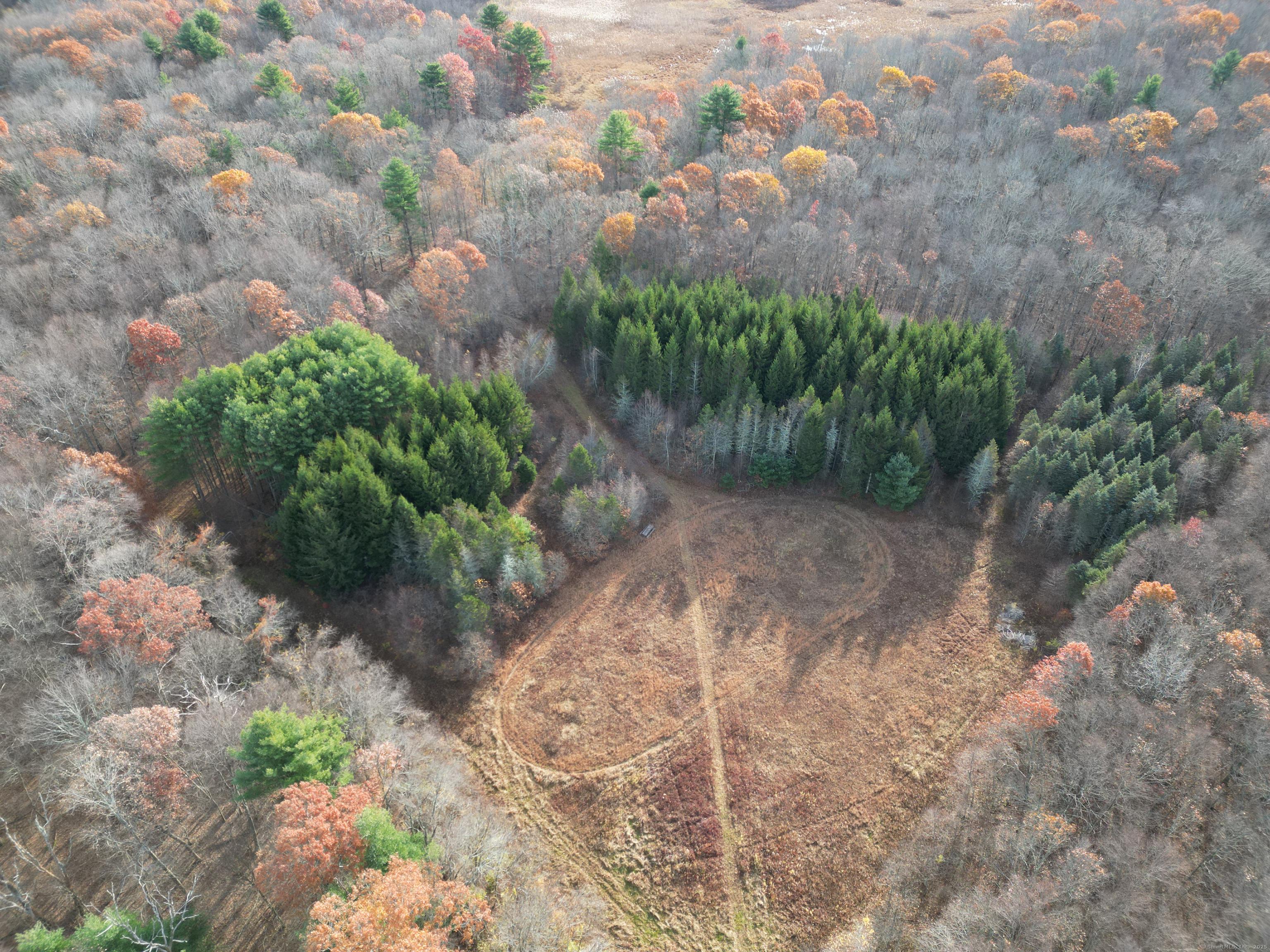 Rarely on the market, a 84 acre parcel with a 1615 sq ft updated home with a two car attached garage overlooking a pond with a Barn and an additional shed for storage of equipment that would be used to maintain the acreage under Public Act 490. The home has a newer roof, oil warm air heat with an attached wood burning furnace to reduce burning oil for heat. The kitchen has Granite counters and Stove, dishwasher, and Refrigerator appliances. The 2 baths have also been updated with step in showers. There are 2 fireplaces, one in the Living Room and the one in the unfinished basement(that is not functioning because of the wood burning furnace) This fireplace can become functional if the wood burning furnace is disconnected. A screen porch and patio overlook the pond - There is an opportunity to continue using this property as the tree farm that it is currently being used or it could be developed as a sub division after purchasing this property AS-IS