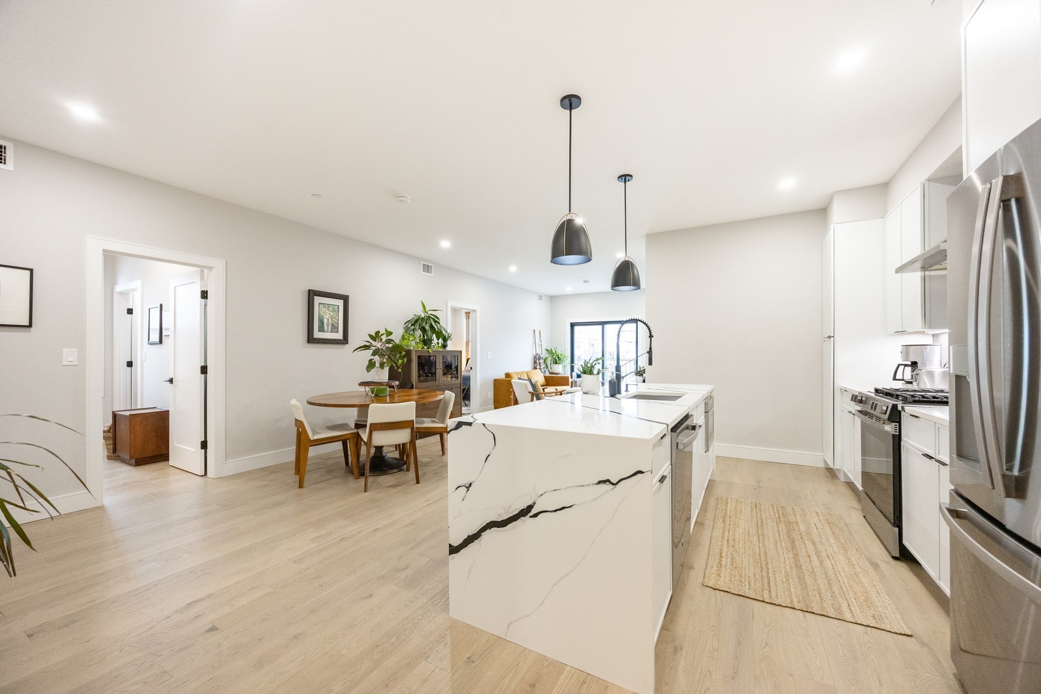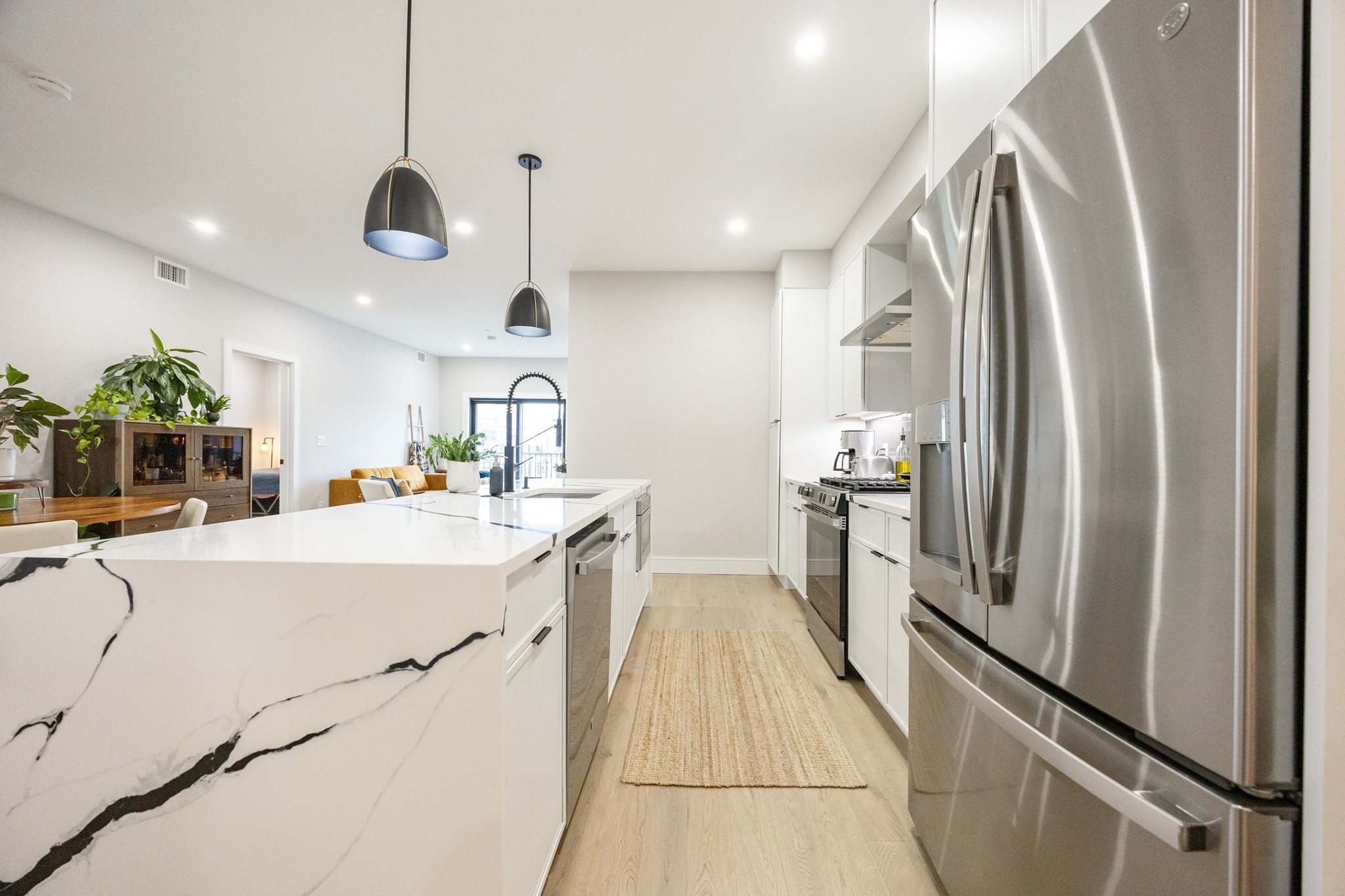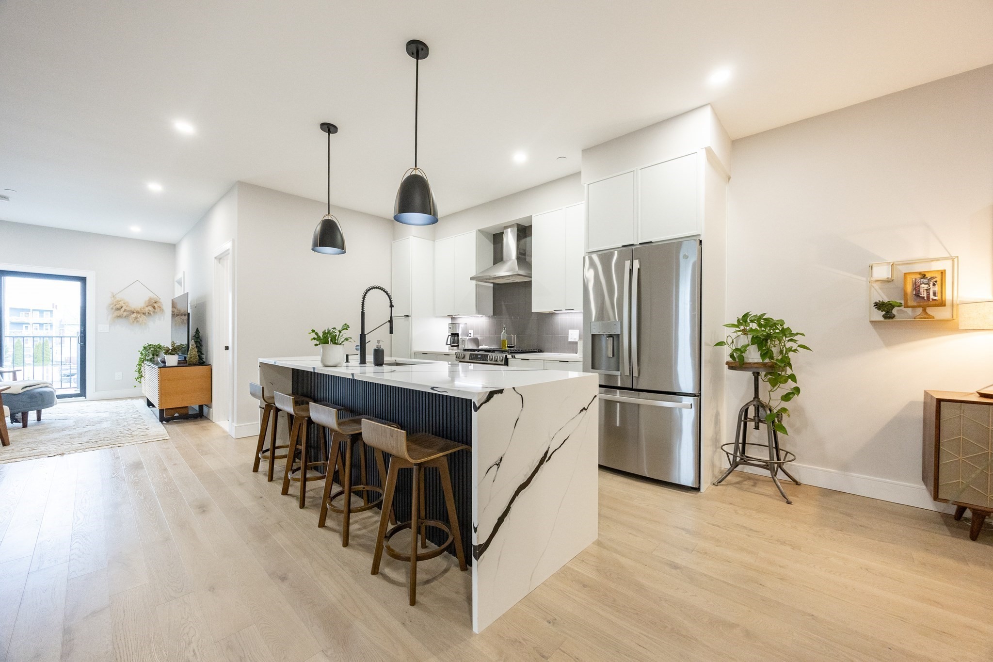 Live the luxury waterfront lifestyle in this stunning new construction 2 Bed / 2 Bath condo in East Boston. Designed with elegance and functionality in mind, the home features a bright, modern layout with floor-to-ceiling windows that capture panoramic views of Boston Harbor. The chef's kitchen impresses with sleek Metropolitan cabinetry, quartz countertops, and full-slab quartz backsplashes.