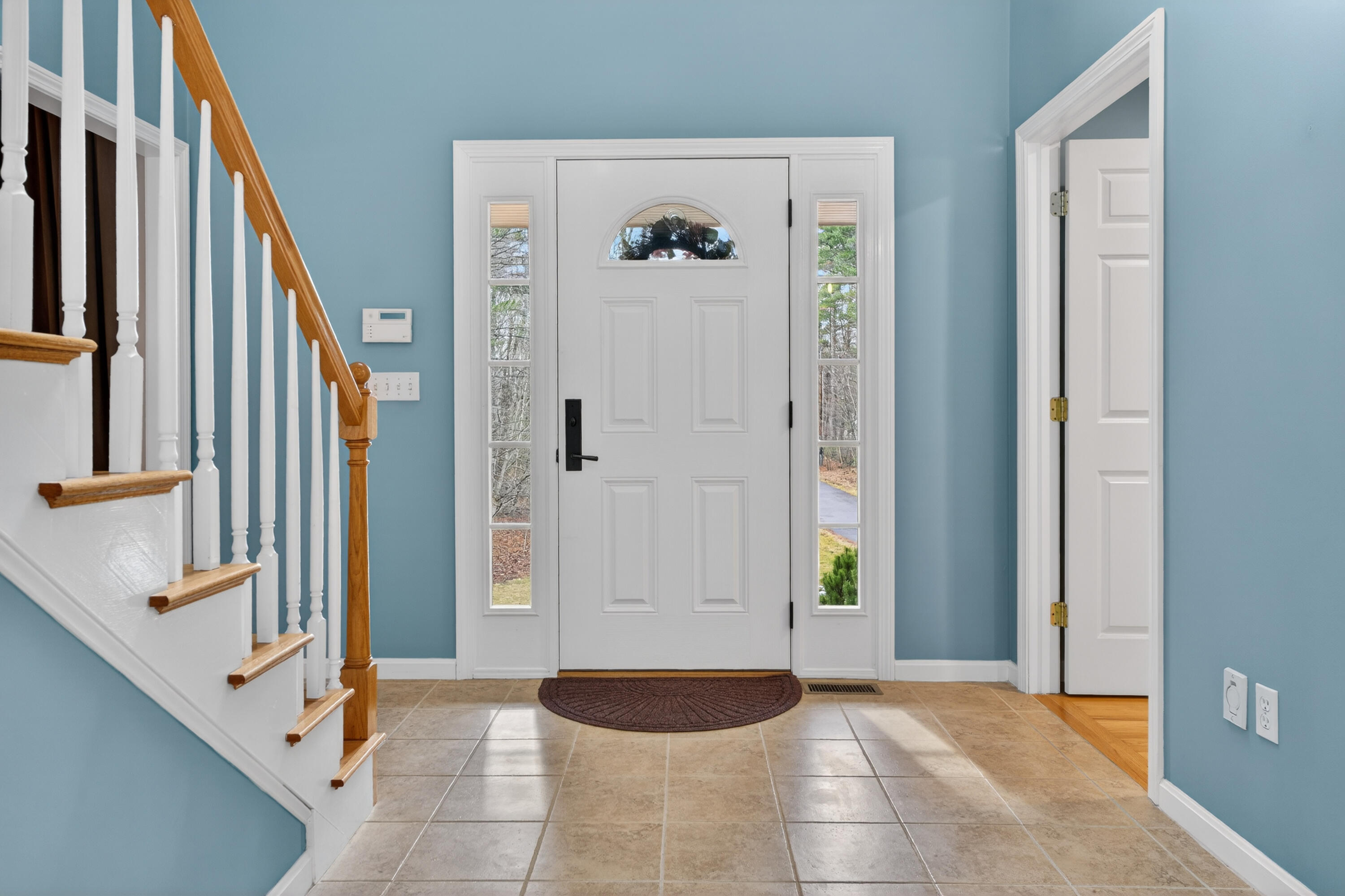 Set on 1.4 acres in Eliot and located within the well-regarded Marshwood School District, this thoughtfully designed Cape offers space, flexibility, and efficiency just minutes from Route 95, Kittery Foreside, and Portsmouth.Set back from the road, the property provides privacy and a quiet, tranquil setting, with a level backyard ideal for outdoor enjoyment or entertaining. A full-length farmer's porch leads into a grand foyer with soaring ceilings and an open staircase.The first floor offers excellent versatility with a spacious room for a home office, den, or potential bedroom, along with a formal dining room, first-floor laundry, and a convenient half bath. The eat-in kitchen with new propane stove flows into a central hub workspace with ample cabinetry and opens to a dramatic great room with 18-foot ceilings and abundant natural light. Two sets of sliders lead to an expansive AZEK deck.Upstairs are three bedrooms, including a primary suite with walk-in closet, jacuzzi tub, and separate shower, plus a second full bath. The walk-out lower level includes approximately 322 sq ft of finished space with a fireplace and offers potential for extended living or guest space, with plumbing in place for a future full bath.Energy-efficient features include geothermal heating and cooling, solar electric, and solar hot water for long-term savings and low-maintenance living. Additional highlights include cedar clapboard siding, architectural shingles, updated flooring, and a repaved driveway.Ideally located near beaches, recreation, and Portsmouth's dining and shopping. Scheduled Showings begin Thursday 4/9. Open Houses Thurs 4/9 4-6, Friday 4-6, and Saturday 10-12