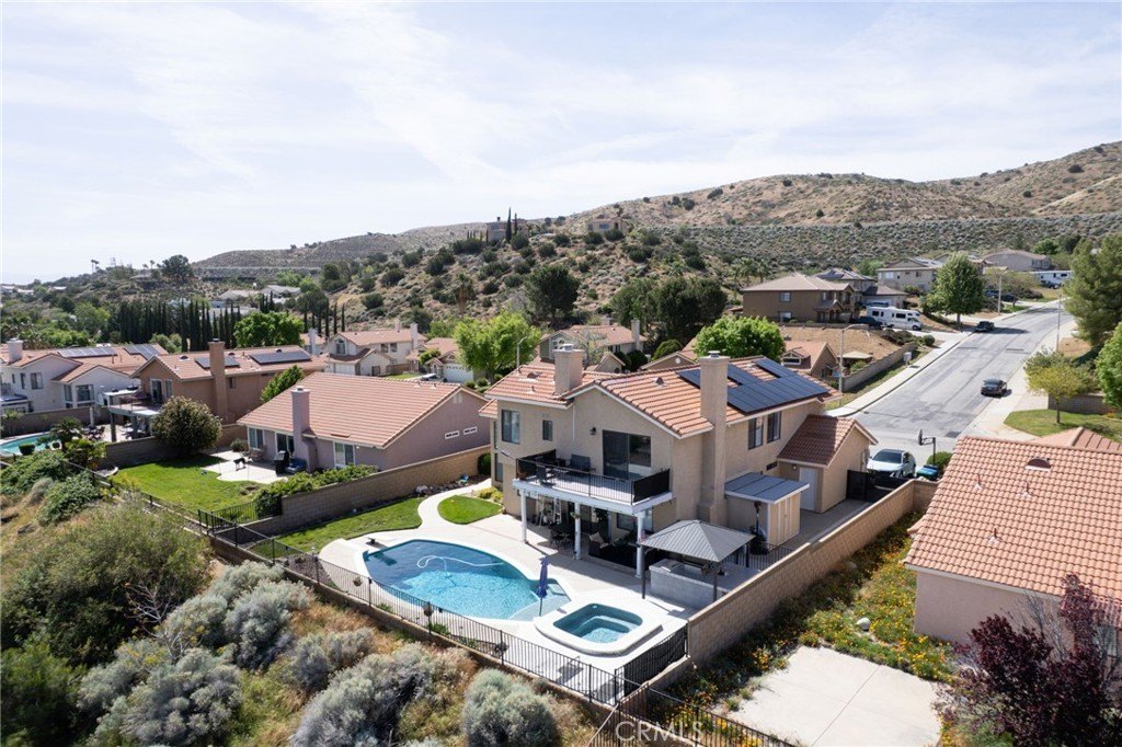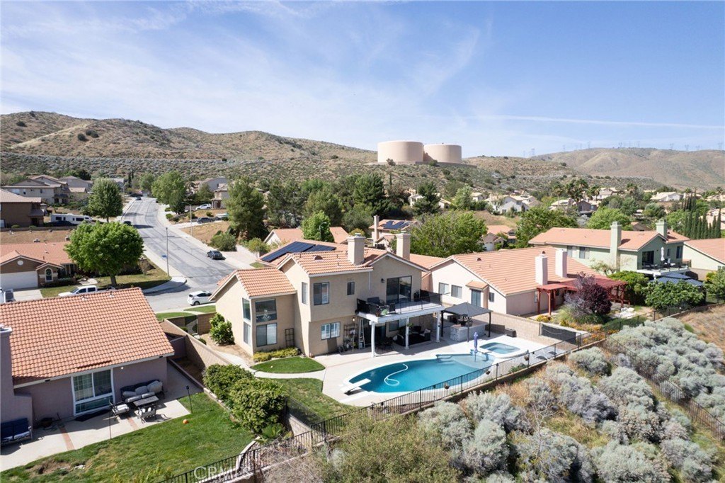 GATED LUXURY IN JOSHUA RANCH SOLAR FREE AND CLEARPANORAMIC VIEWSWelcome to one of Joshua Ranch's most refined offerings -- a meticulously upgraded 4-bedroom, 4-bathroom estate spanning 3,186 square feet on an expansive 12,443 sq ft lot in one of West Palmdale's most sought-after gated communities.From the moment you arrive, custom plantation shutters and thoughtful designer touches signal that this home is something special. Inside, a seamless open-concept layout invites you into a chef's kitchen crowned by a stunning quartz island, butler's pantry, and walk-in pantry -- a space equally suited for quiet mornings and lively gatherings. The family room anchors the heart of the home with a dramatic floor-to-ceiling fireplace flanked by custom built-in shelving.A private downstairs bedroom with its own full bath offers ideal flexibility for guests or multigenerational living. Upstairs, a generous loft -- easily converted into a 5th bedroom -- leads to two well-appointed secondary bedrooms and a luxurious primary suite designed for true retreat.Step outside to your covered patio where sweeping mountain and hillside views stretch as far as the eye can see -- the kind of backdrop that makes every evening feel like an occasion. The oversized lot provides room to breathe and space to make it your own.Energy efficiency is already handled -- Solar free & clear and a Tesla EV charger mean lower bills and modern convenience from day one. This is the rare home where the vision is already complete -- all that's left is making it yours.