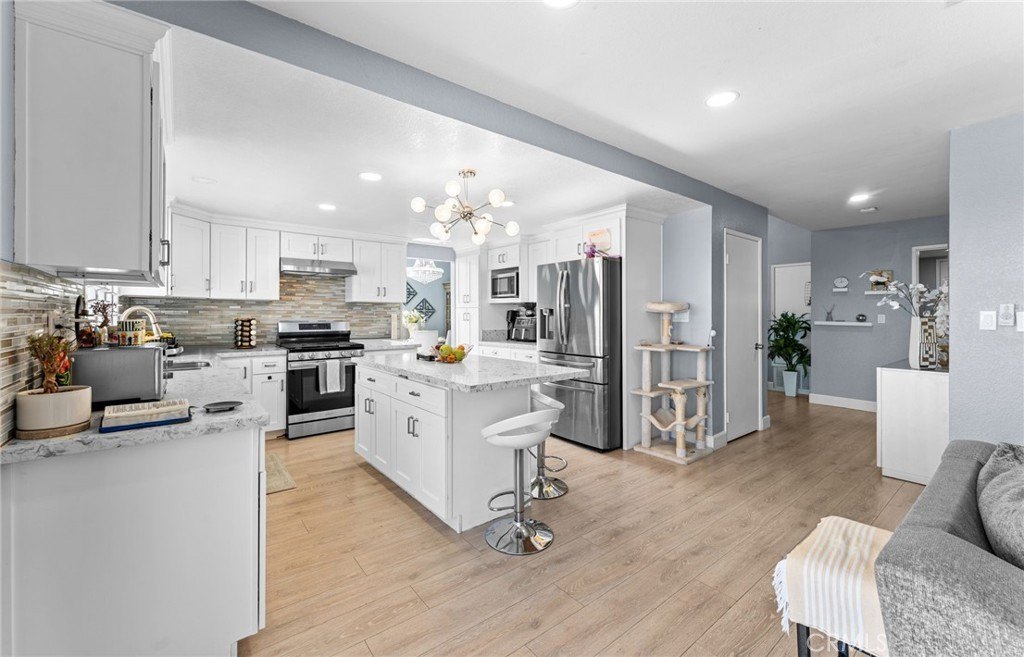 Incredible Opportunity - Main Home Plus Guest Quarters on 2.37 Acres! Don't miss this unique chance to own a spacious property with endless possibilities. Situated on a flat 2.49-acre lot, this estate features a main house with 3 bedrooms and 2 bathrooms and a separate guest quarters—ideal for extended family, guests, or rental income. The main home boasts an open, light-filled floor plan with an inviting living room featuring a cozy fireplace and a large dining area. The updated kitchen showcases custom cabinetry, quartz countertops, colorful stone backsplash, and stainless steel appliances—perfect for any home chef. The primary bedroom offers a private retreat with an updated en-suite bathroom featuring granite countertops and travertine tile flooring. Plus, the home is equipped with solar panels for energy efficiency. Step outside to an impressive, fully usable flat lot that opens up countless possibilities—whether you're dreaming of a hobby farm, horse property, or just extra space to enjoy. You'll find a covered patio, fruit trees, RV access, ample covered parking, and plenty of room for large vehicles, animals, or even future expansion. Make this your private year-round retreat—the space, flexibility, and potential here are unmatched!