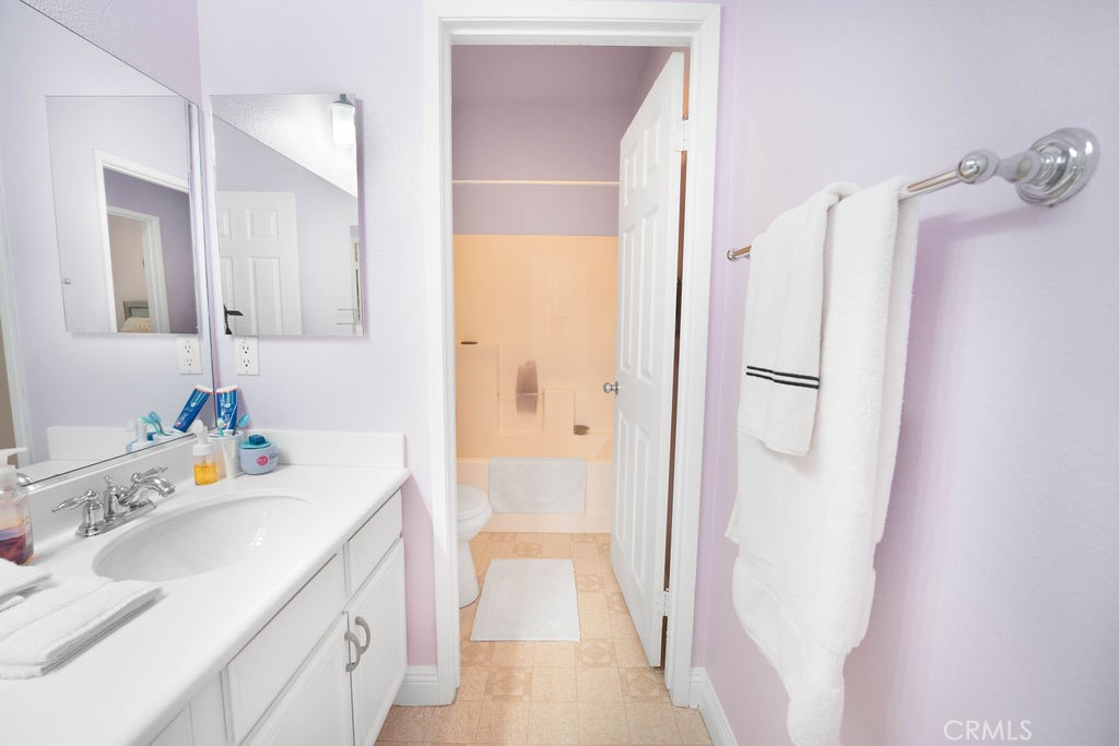Welcome home to this move-in ready, beautifully renovated residence featuring a highly desirable floor plan. The home offers a convenient downstairs bedroom, soaring ceilings, and a spacious three-car garage. The updated interior includes a remodeled kitchen with white cabinetry, granite countertops, and stylish backsplash, along with renovated bathrooms and new tile flooring. Upstairs features generously sized bedrooms, including a large primary suite with an en-suite bathroom and dual sinks. Enjoy indoor-outdoor living with an enclosed patio and newly landscaped front and backyard spaces, perfect for relaxing or entertaining. This home combines modern upgrades, comfort, and functionality—don’t miss the opportunity to see it.