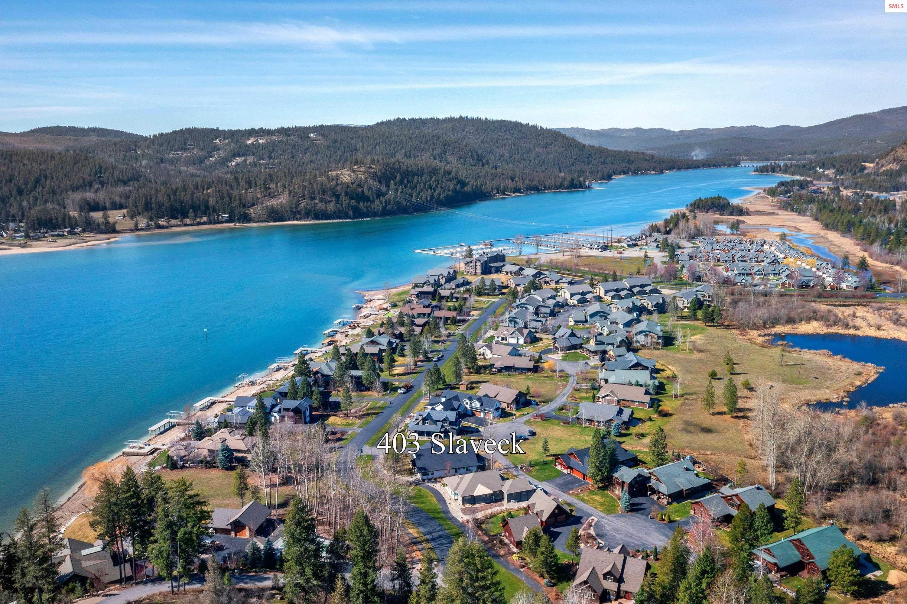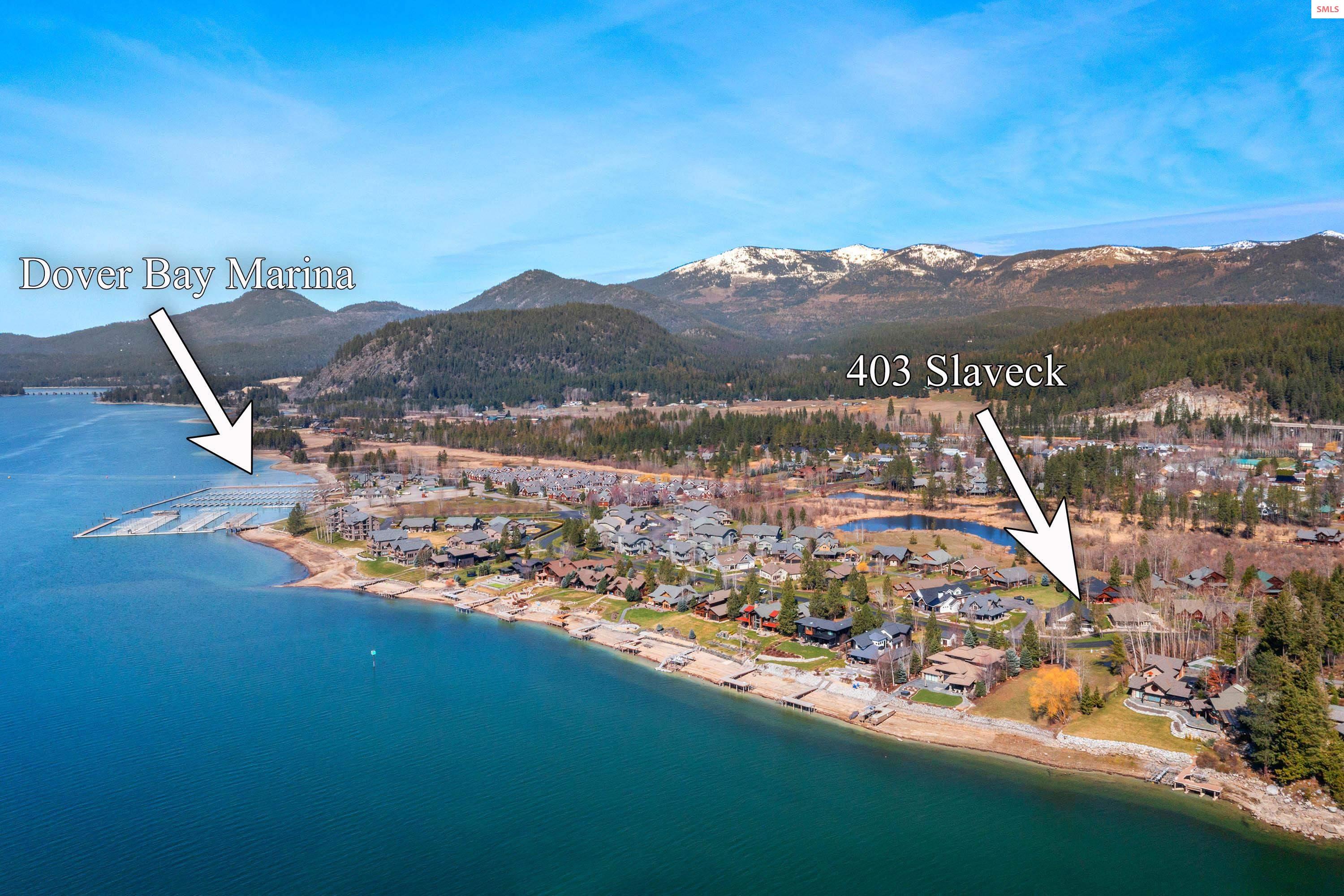 Experience exceptional design and superior craftsmanship in this stunning Dover Bay residence, perfectly positioned just one tier from the water. A spacious, level entry with unique rock wall opens to an airy floor plan with vaulted ceilings, a custom fireplace, 3 bedrooms, 2.5 baths and views of the Pend Oreille. The chef-inspired kitchen features a central island, full-length quartz countertops, expansive pantry, abundant custom cabinetry, Thermador and Sub-Zero appliances. An inviting three sided enclosed patio offers outdoor living space and the ideal place to unwind. The main suite is a true retreat, complete with its own fireplace, dual walk in closets, a luxurious bath, and a private patio to take in northern mountain views. Two generous guest bedrooms are thoughtfully situated on the opposite side of the home for added privacy. Live the resort lifestyle with the marina and fitness center just moments away, and enjoy close proximity to Sandpoint and Schweitzer Mountain. Elevate your expectations and prepare to fall in love with 403 Slaveck, a home to cherish for a lifetime.