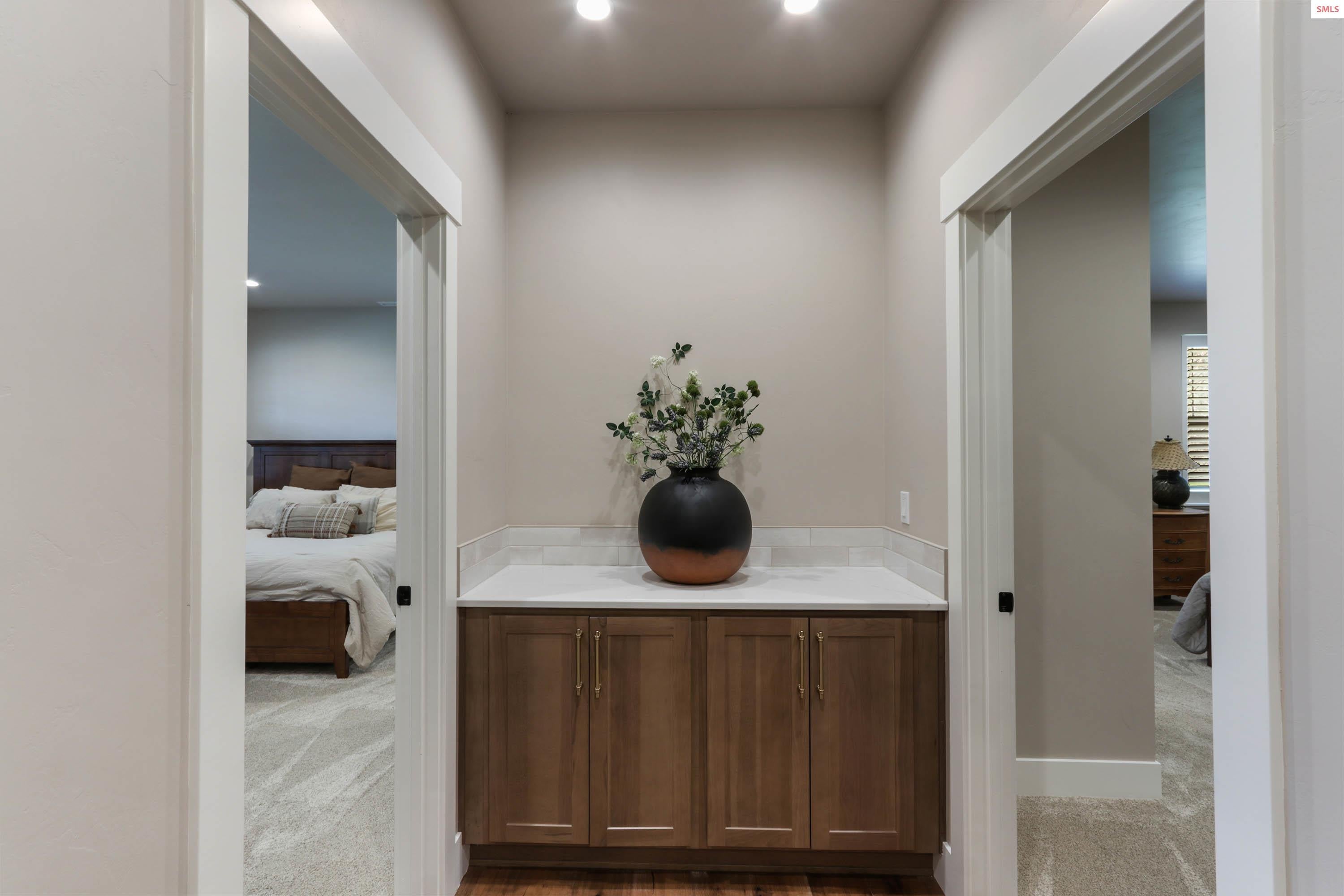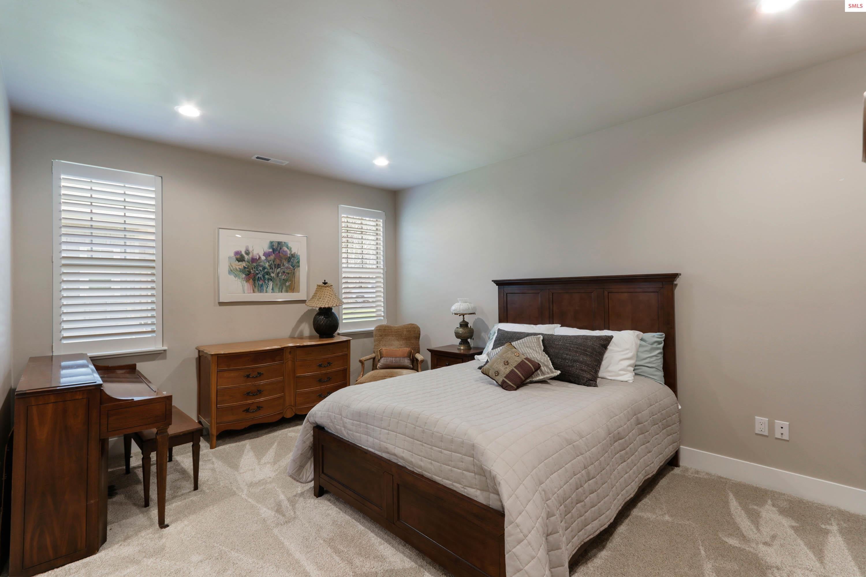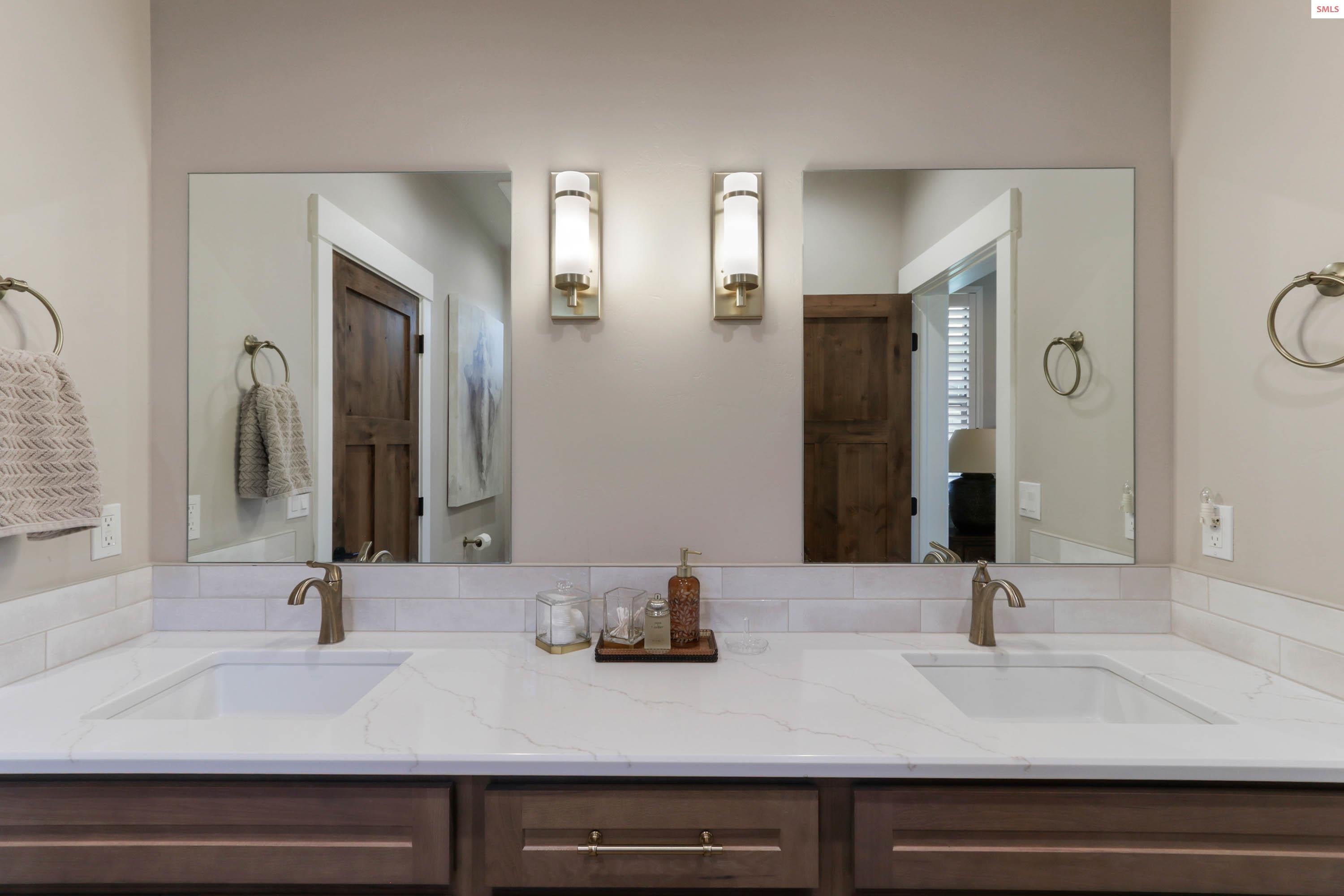 Beautiful custom home located in the premier Hayden Lake Country Club Estates. Remodeled with great care, this luxury home has 4 en-suites, which include a guest house or mother-in-law quarters. 3 gas fireplaces, historic local barnwood for accent, yet the feel of a just completed new home. 3 car garage work/shop and a new'' extra garage / she-shed'', large patio, beverage refrigerators, and all appliances stay. This 3,577 sq ft home is located in the gated Country Club Estates along with other beautiful custom homes, and near two golf courses, the lake, shopping, school, and restaurants. The home is located on the newly renovated #4 tee box of the course with views in every direction. The exterior home was just recently painted in 2025. Newer washer and dryer installed in 2024. Seller is selling home as a 1031 exchange. This is a must-see home.