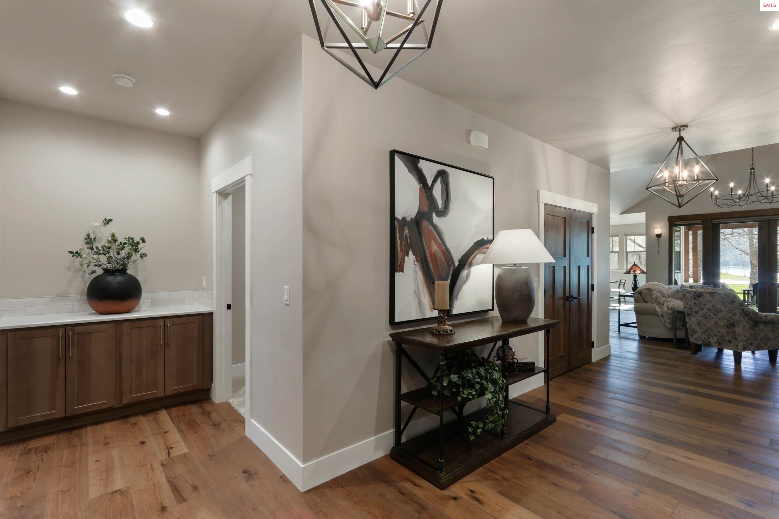 Experience exceptional design and superior craftsmanship in this stunning Dover Bay residence, perfectly positioned just one tier from the water. A spacious, level entry with unique rock wall opens to an airy floor plan with vaulted ceilings, a custom fireplace, 3 bedrooms, 2.5 baths and views of the Pend Oreille.