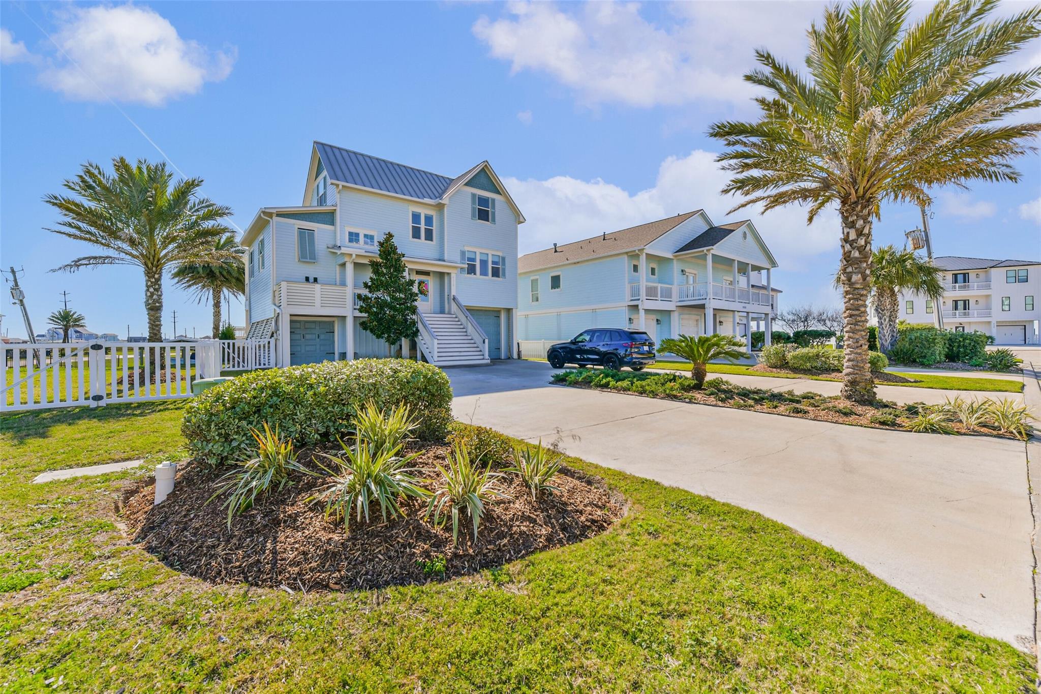 Steps from the beachfront in highly desirable Pirates Beach. Excellent vacation rental potential with Gulf views and convenient beachfront access without the erosion risk of a beachfront property. Tons of recent improvements, including two new ACs (2023), Hardi Plank siding, two new hot water heaters (2022), high strength storm rated windows & doors, fresh paint and flooring. The high-end furnishings convey with the property (fully furnished). Three bedrooms, three full baths & a half bath, with two of the bedrooms being primary suites. The beach views from the 3 decks & roof top deck are a must see. Never miss a sunrise or sunset from the abundant exterior deck locations. No need to get on the Galveston Country Club waiting list, your social membership conveys with the sale (monthly dues to GCC are required). The ground level has a convenient golf cart garage and outdoor shower. This property will not disappoint, book your showing ASAP.