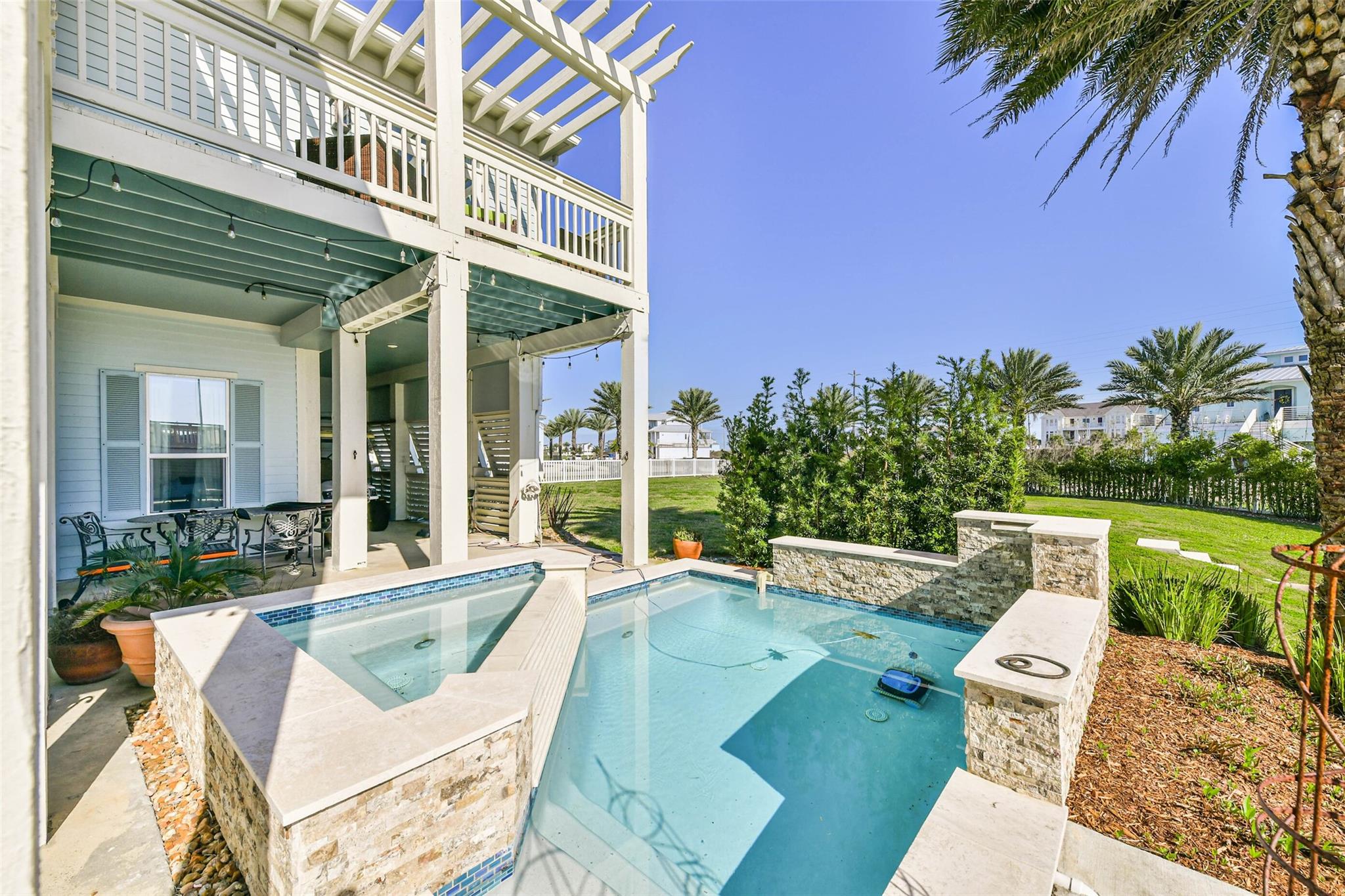 Luxurious waterfront living awaits at 3126 Lafittes in The Harbor! This stunning 5 bed, 4.5 bath home boasts multiple decks with breathtaking views. Featuring a spacious kitchen, living room, dining room, wet bar, and a primary suite with a generous ensuite & ample closet space. Upstairs, discover guest rooms, a study, and a game room with a drink refrigerator. The ground floor offers a heated pool, outdoor kitchen, outdoor shower and a boathouse with lift. An entertainers dream, this property epitomizes the ultimate waterfront lifestyle.