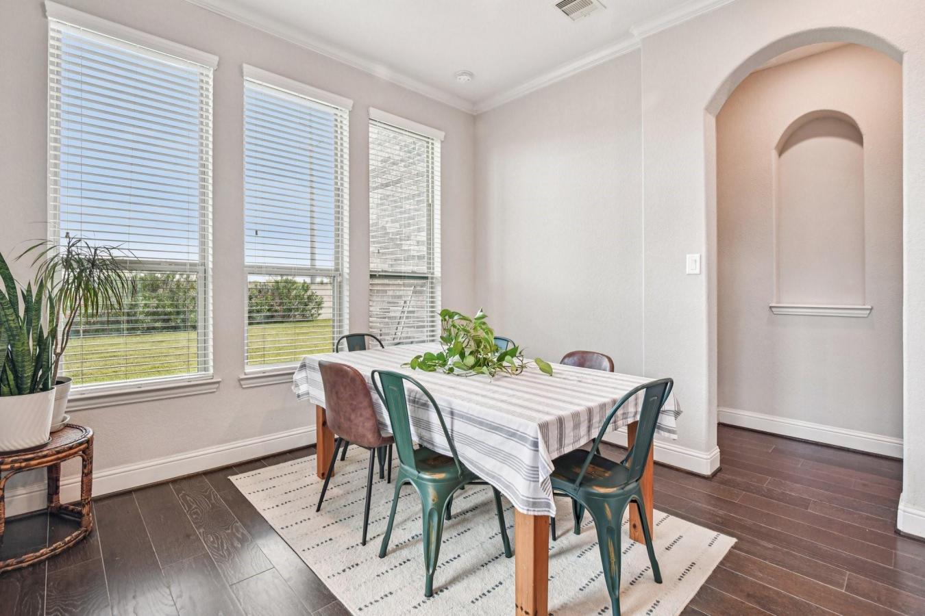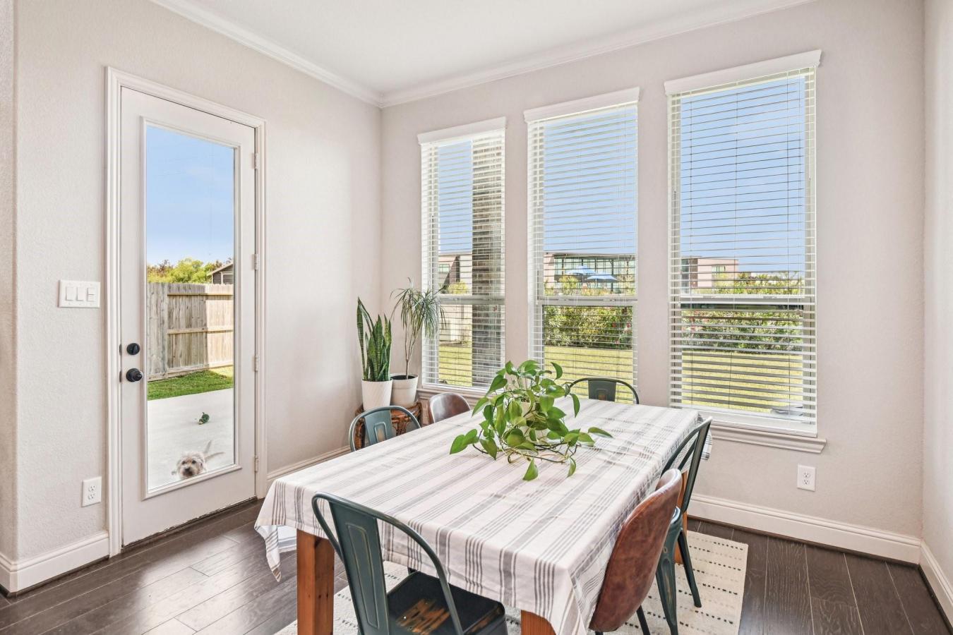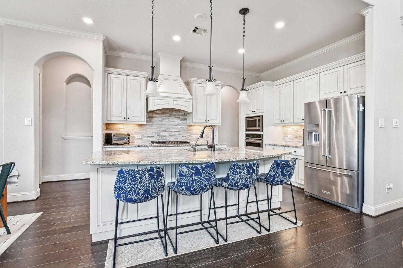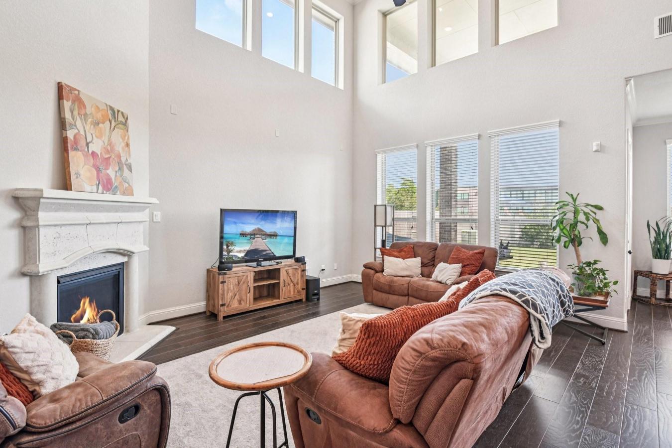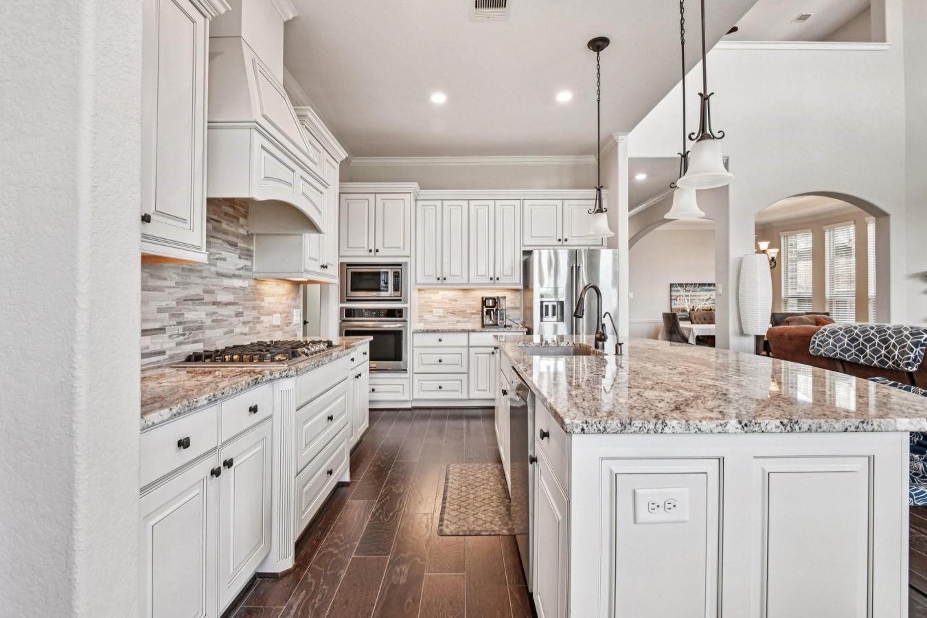 A beautifully designed home offering over 4, 000 square feet of open-concept living in one of the areas most desirable communities. Step inside to find rich hardwood floors, soaring ceilings, and a spacious layout designed for both everyday living and entertaining. The gourmet kitchen is the centerpiece of the home, featuring built in cooktop and oven, ample counter space, and seamless flow into the main living area. With two bedrooms conveniently located on the main floor, this layout is ideal for multi-generational living, guests, or a private home office setup. Upstairs, enjoy a dedicated media room and game room - perfect for movie nights. Step outside to your extended patio with no back neighbors, offering privacy and room for a pool. Location matters, and this one delivers! Walking distance to Cline Elementary School and Riverstone Montessori. Additional highlights include a spacious 3 car garage, open-concept design, and new "forever roof". Dont wait - schedule today!