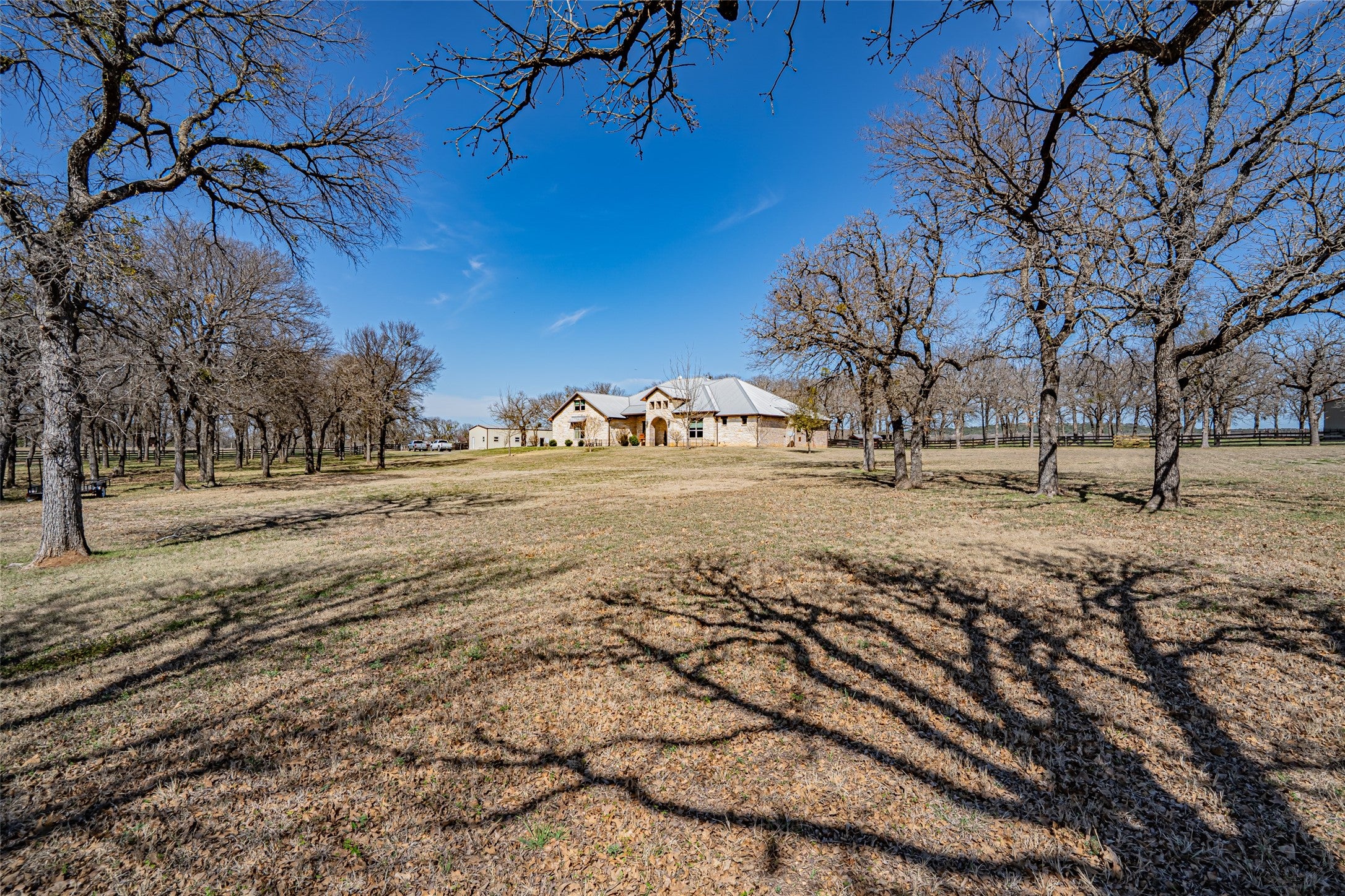 COUNTRY ESTATE! Incredible location very convenient to town. Quality best describes this 3,800 sq. ft., 4-3-3 stone home with large bonus room. 25 Acres, large oak trees, open pasture, corrals, impressive gated entrance, paved road, 30X60 metal barn-shop, very private. Large open living space with exposed beams, hardwood floors, gourmet kitchen, large island great for entertaining. Large outdoor kitchen area with exposed beams. Fantastic view of Comanche Peak.