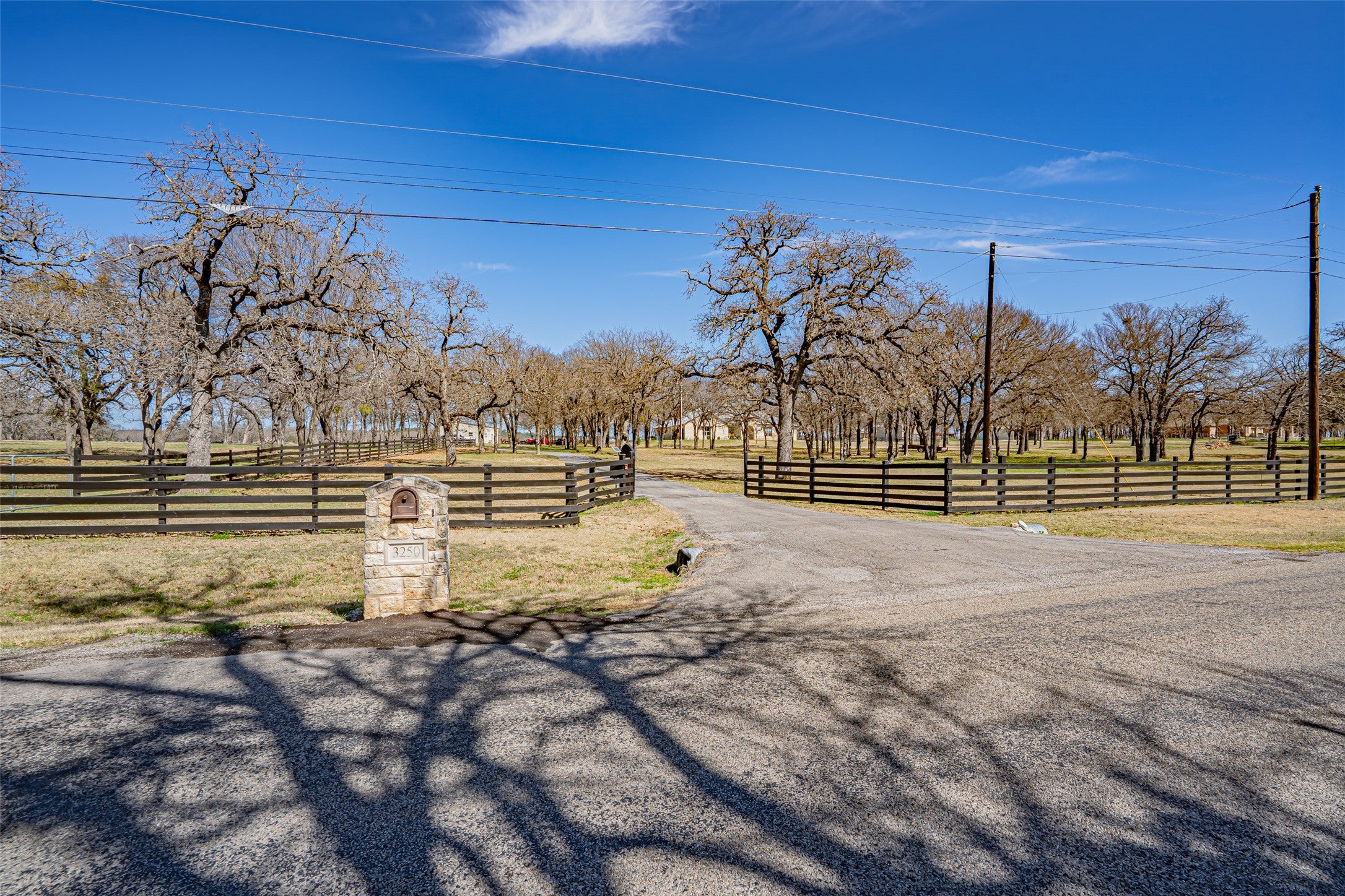 Enter the front gate to Rolling Creek Ranch from Lusk Road and remain on Heathington. The house is located at the corner of Heathington and Helton.