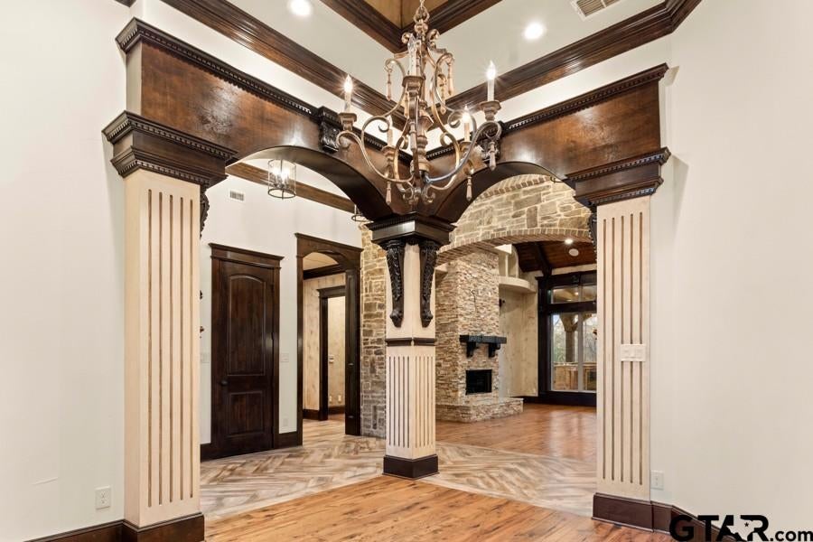 Welcome to this extraordinary 6-bedroom, 6-bath home with a 3-car garage, offering 5,669 square feet of refined living space in the highly sought-after Hollytree subdivision in the heart of Tyler. Filled with charm, character, and hidden surprises, this home is designed for both luxurious everyday living and exceptional entertaining. Inside, youll find two main living areas that provide ample space to gather and unwind. The grand kitchen is truly the heart of the home, featuring an abundance of cabinetry, expansive counter space, and a large center islandperfect for hosting, cooking, and creating memories. A wine cellar adds an elegant touch for the wine enthusiast. The dedicated movie room is impressive in its own right, complete with a projector for an immersive at-home theater experience. Another versatile room can serve as a third living area and includes its own wet bar, making it ideal for entertaining. Each bedroom and bathroom is generously sized, offering comfort, privacy, and flexibility. The primary suite is a true retreat, featuring a stunning back-to-back fireplace, a dry bar, an oversized walk-in closet, and a luxurious en-suite bath designed for relaxation. Step outside to enjoy a beautifully maintained backyard with a sparkling pool and hot tubperfect for relaxing or entertaining. Attached to the garage, youll find a private mother-in-law suite complete with its own bathroom, offering ideal space for guests, extended family, or added privacy. With its prime location, expansive layout, and impressive amenities, this Hollytree home is a rare opportunity to own a truly remarkable property.