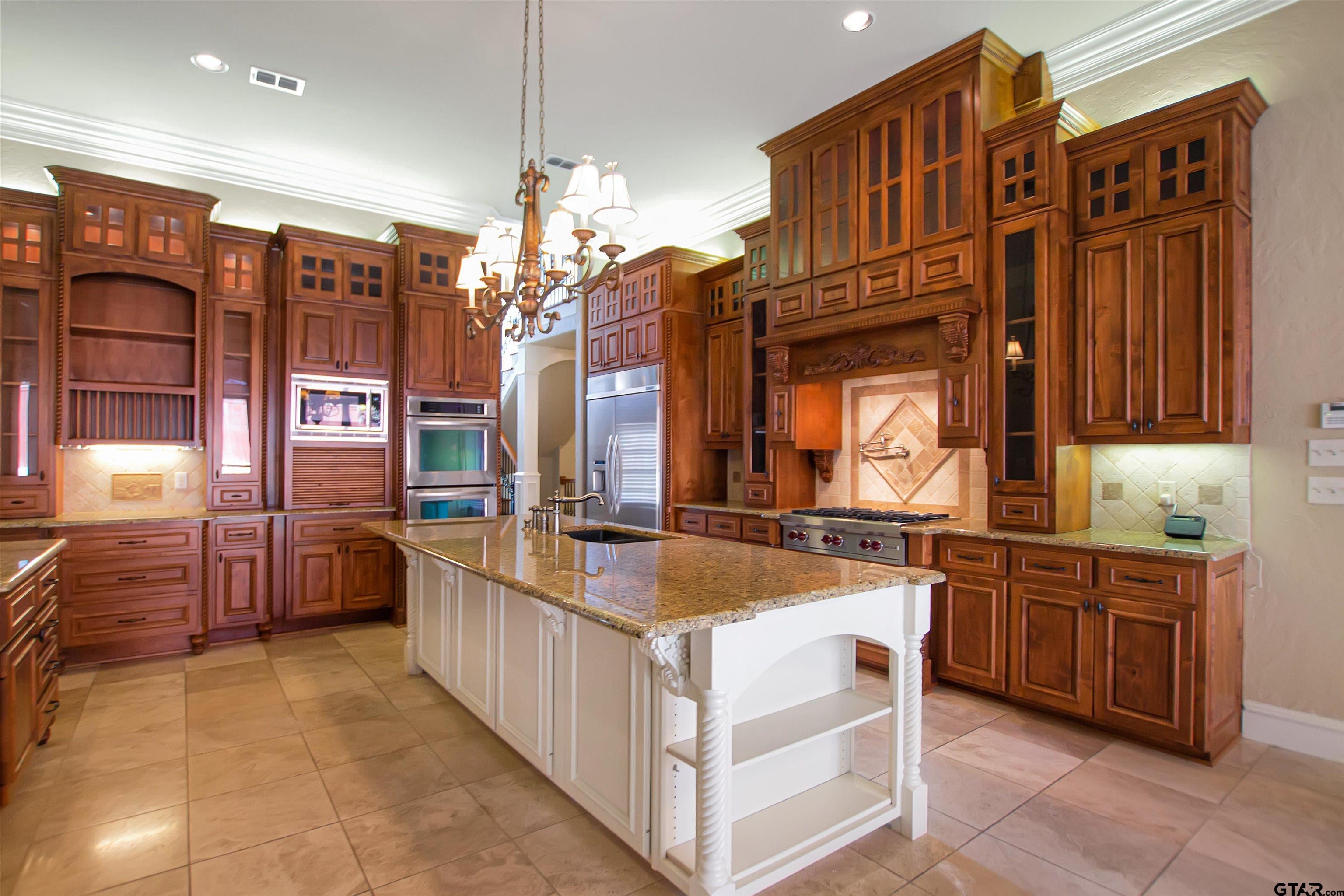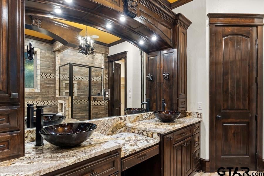 Spectacular custom home built with every upgrade your heart desires. From custom cabinets in kitchen, bathrooms, and office/study, to the fabulous outdoor kitchen, this home will blow you away. With 4 bedrooms and 4.5 baths, not to mention the upstairs media room and the shop with electric and plumbing already installed and ready for your vision, you wont ever want to leave. The intricate details in the woodwork all throughout the home is breathtaking and the stone fireplace is perfect for cold winter nights. The kitchen is a chefs dream, complete with gas stove and custom finishes. Sitting on 4 acres just minutes from Tyler, the possibilities are endless. There is a concrete pad out back, ready for a pool house and the yard is perfect for the pool design of your dreams.