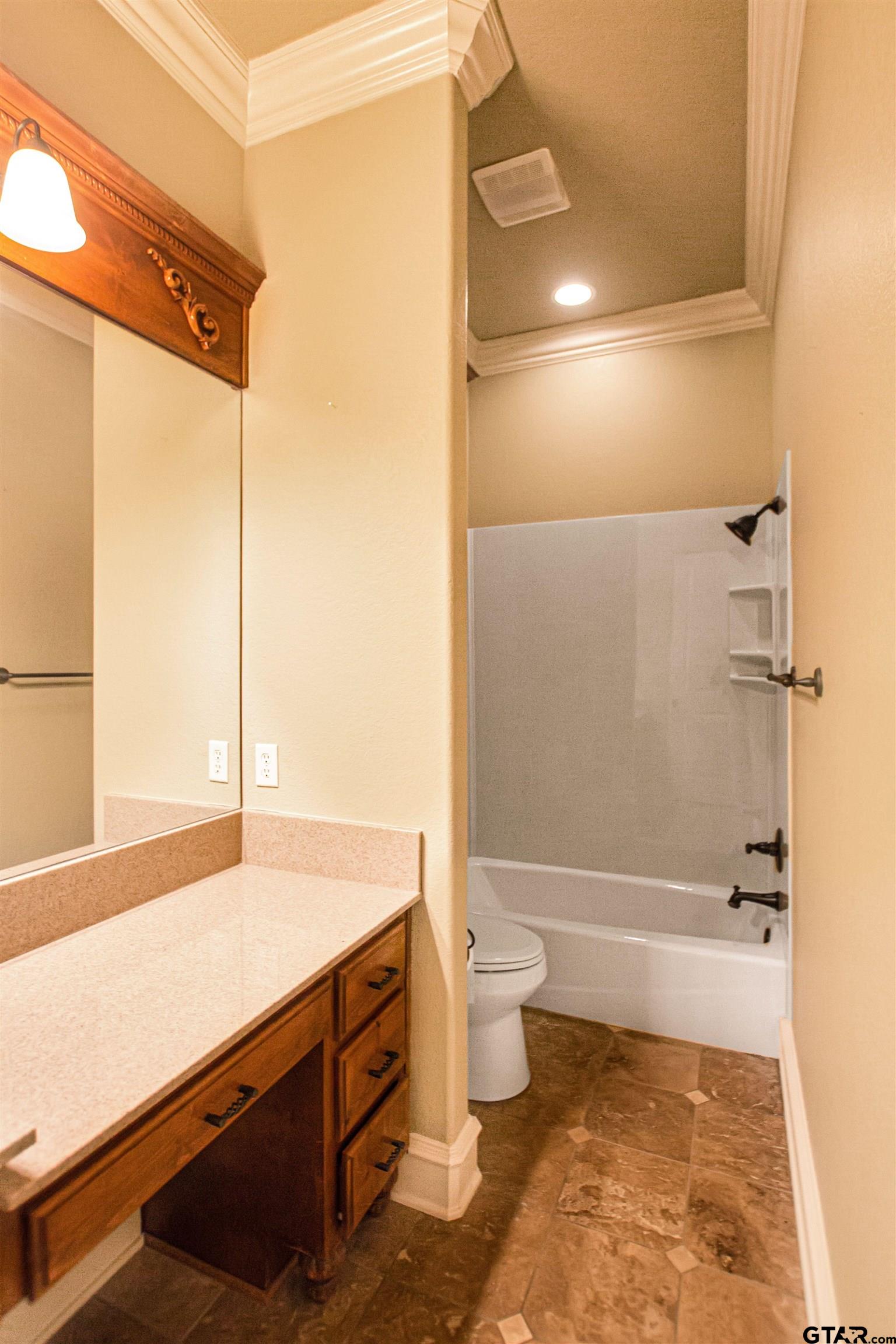 This stunning new build by JM Elite Construction is ready and within minutes of Tylers best shopping locations and parks. This open concept home features 2,543 square feet, 4 spacious bedrooms, 2.5 large bathrooms, a sizable laundry room, and 2 car garage. You will feel right at home as you walk into the living room that boasts a gorgeous gas fireplace, custom flooring throughout, built-in bookshelves, and easy access to the back porch. The kitchen features quartz countertops, custom built-in cabinets throughout, and a stainless-steel stove, and a large island perfect for entertaining. Just off the kitchen, you will find a large dining area with a large window and modern lighting. Enjoy a bonus room on the second floor - perfect for an additional bedroom, recreational room, or home office! Feel the luxury with double vanities and privacy partitions in each primary bathroom. The backyard features a beautiful, covered patio, privacy fencing, and sprinkler system. Dont miss the small details that make this home shine: designer lighting, detailed trim work, and box ceilings throughout. Dont miss your opportunity to view this incredible home. Call today for a private showing.