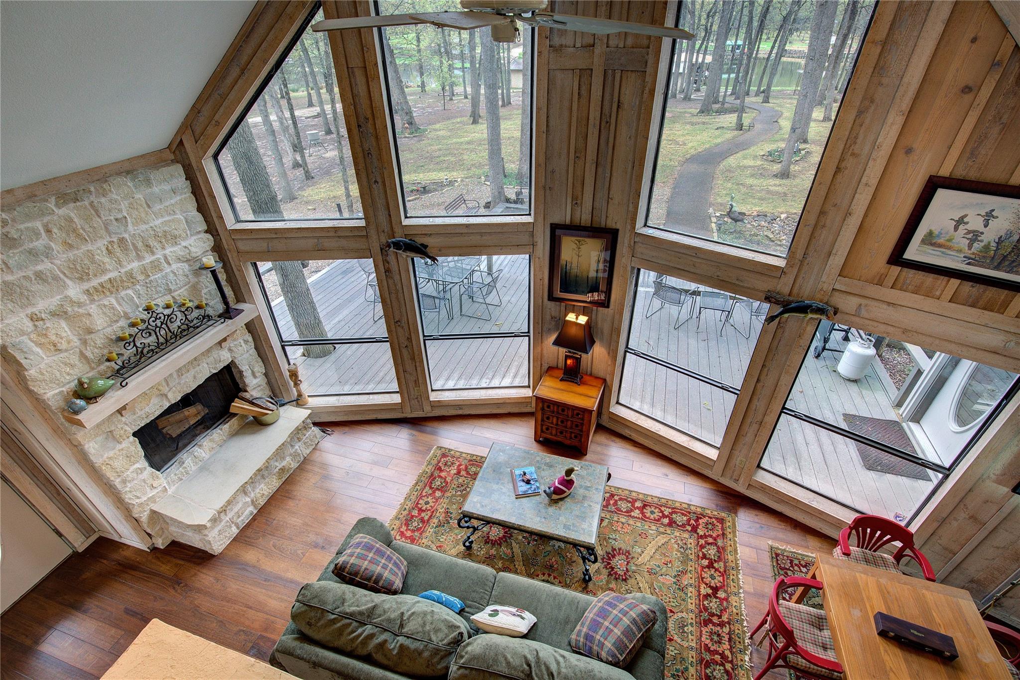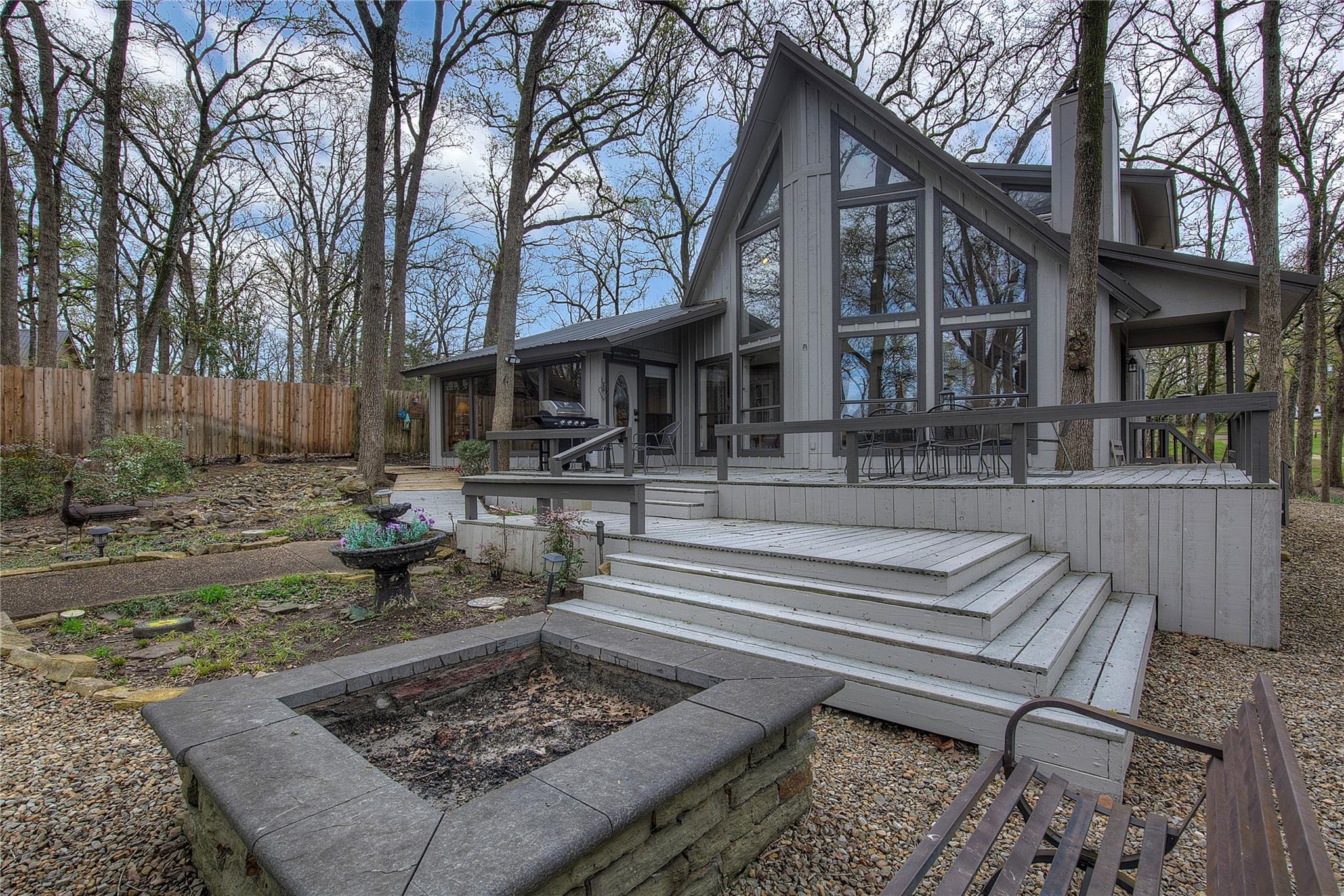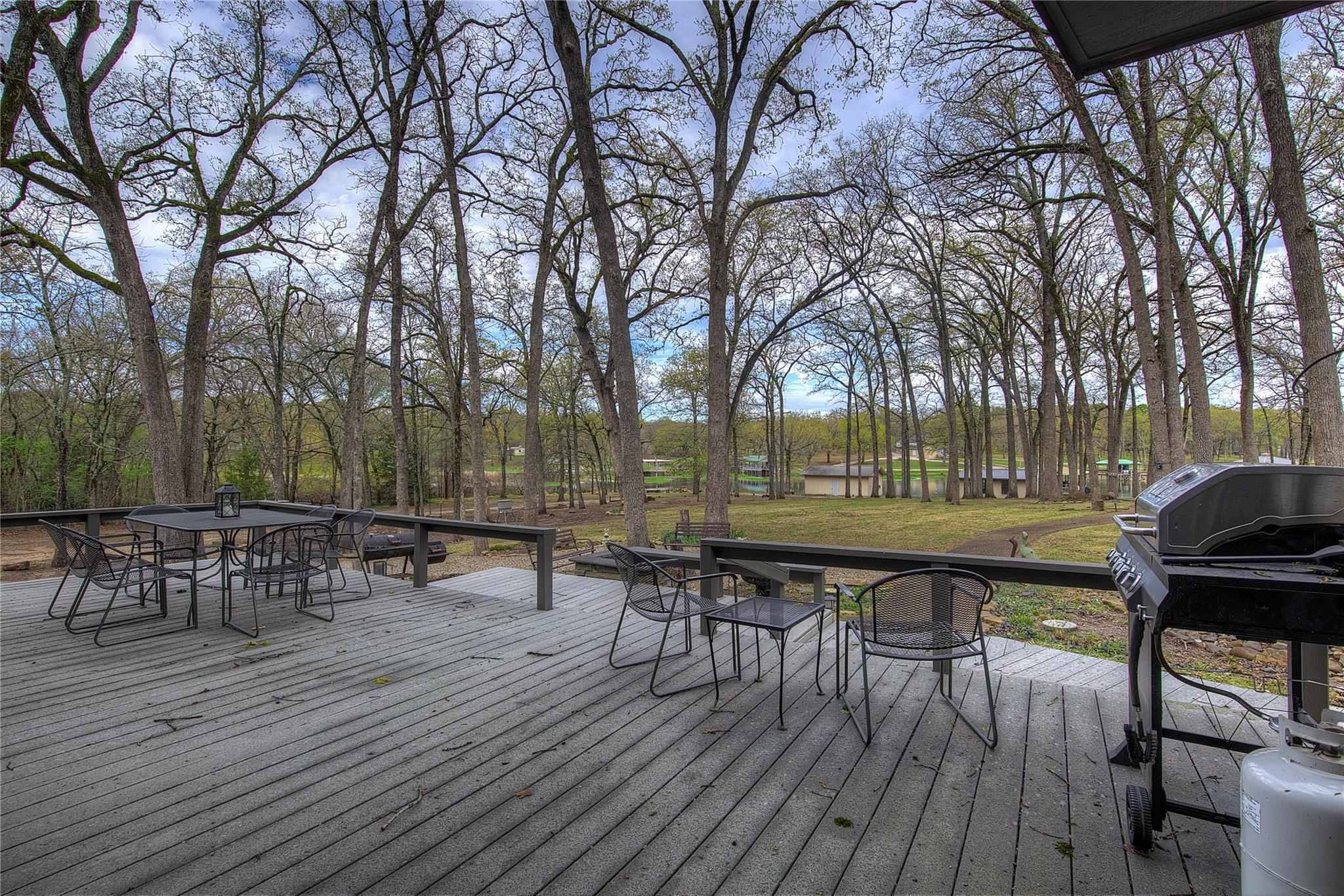 Welcome to 6 High Point Drive—an exceptional retreat nestled on a quiet cul-de-sac in Pleasant Grove ISD. This stunning 3-bedroom, 4-bath home offers a seamless blend of comfort and nature, with a light-filled family room wrapped in windows on three sides, perfect for watching deer and other wildlife roam the wooded backdrop. The chef’s kitchen is a dream, featuring elegant finishes, double ovens, a gas cooktop, wet bar, and generous storage—all open to the family room so you can enjoy the view while you cook. Each bedroom is an en-suite with ample closet space, and the primary suite opens to a private hot tub for relaxing under the stars. A massive deck invites outdoor entertaining, while the upstairs game room offers a cozy fireplace, full bath, bar, and a balcony overlooking the peaceful landscape. A storage building adds practicality to this serene and spacious home.