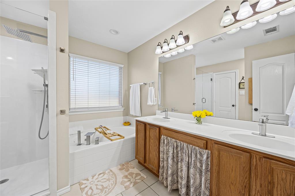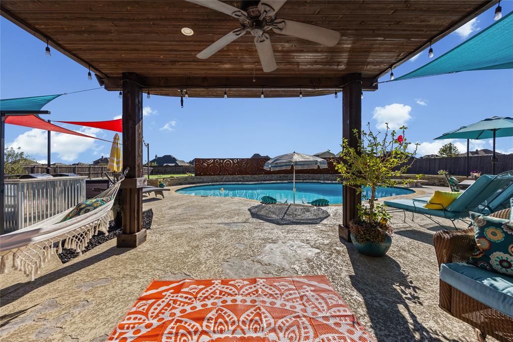 SIGNIFICANT PRICE REDUCTION! MOTIVATED SELLER CONSIDERING ALL REASONABLE OFFERS! Get that Country feel just minutes away from the City in this former Model home on a PREMIUM corner lot with patio views of the community pond and just steps away from the green spaces. This 5 bedroom, 4 bath home, boasts almost 3700 sq ft of living space. No crazy color palette here - just versatile, natural earth tones that never go out of style. Upgraded flooring throughout, including wood-look tile flooring in common areas, contemporary Shaker cabinets, upgraded tile in showers & backsplash and a SOARING 17 stone fireplace in the main living area. Downstairs the layout holds an office-study, Formal Dining, Primary Suite with Enlarged Shower, and a Guest Suite. Entertainment area upstairs features a game room and media room and 3 more bedrooms. Just too many upgrades to list! Entertainment and sports complex close by, as well as dining and shopping. Easy access to hwy 287 and just 4 miles from I-35. Come by to tour this home for yourself. At this LOWER PRICE it won’t be on the market long!