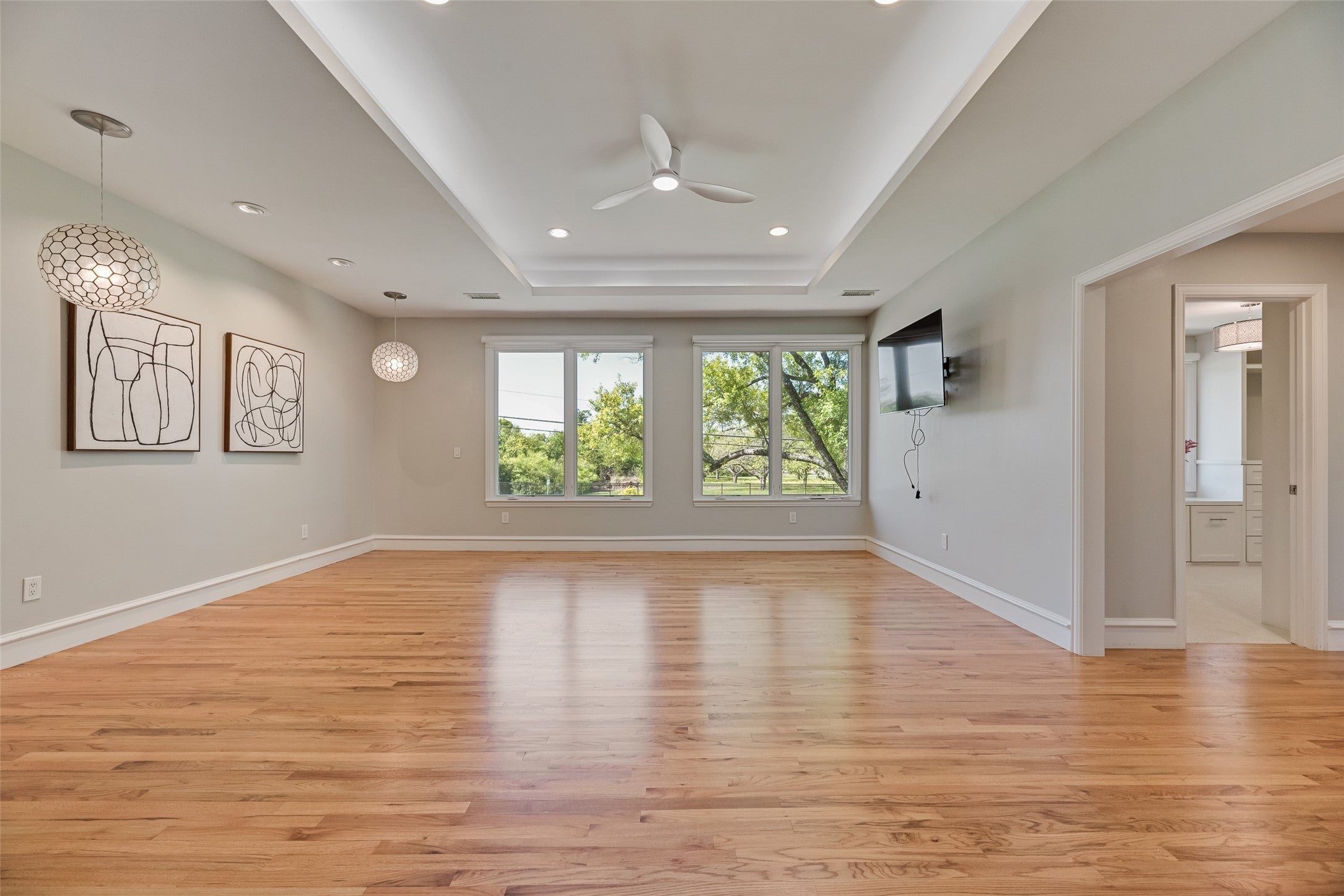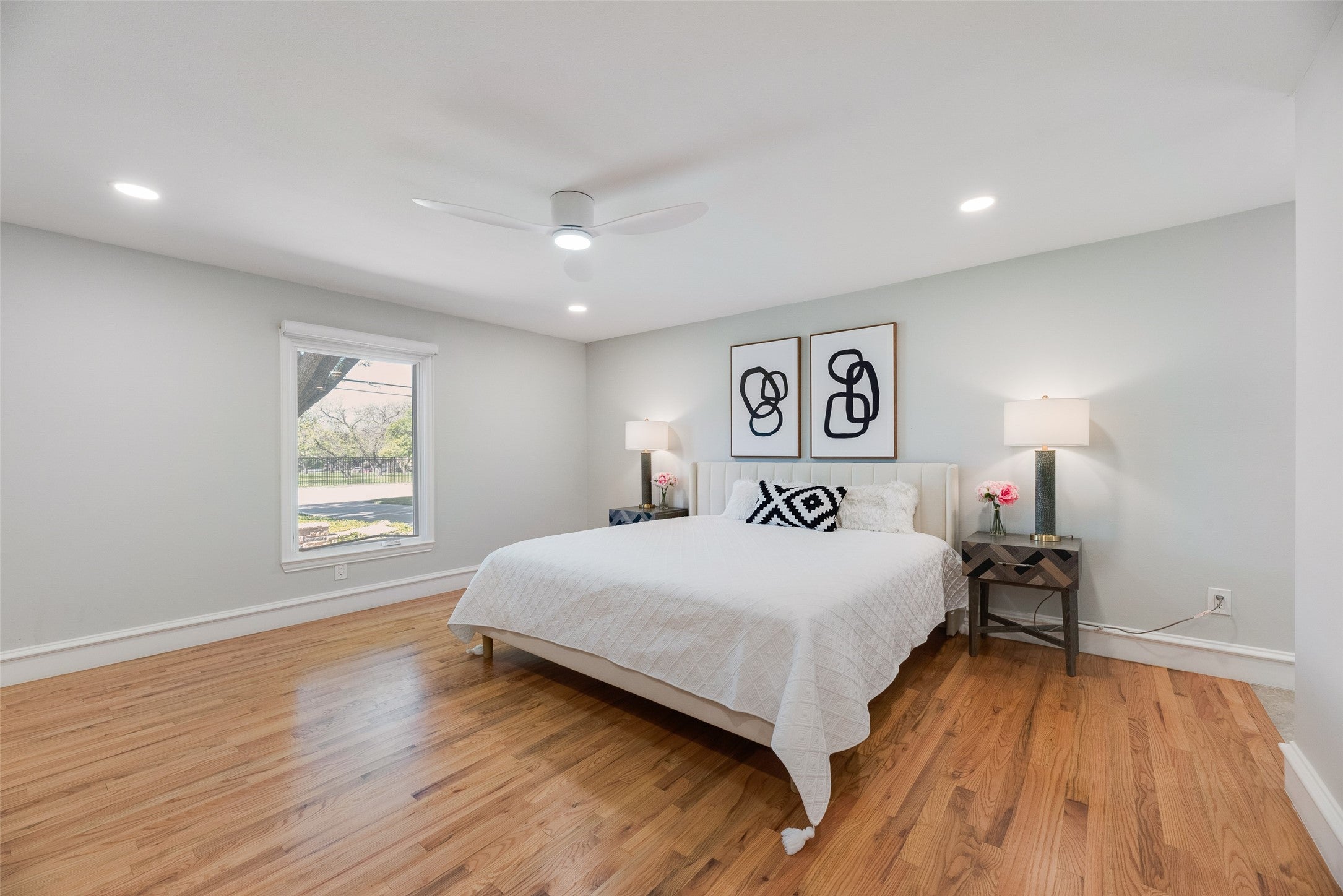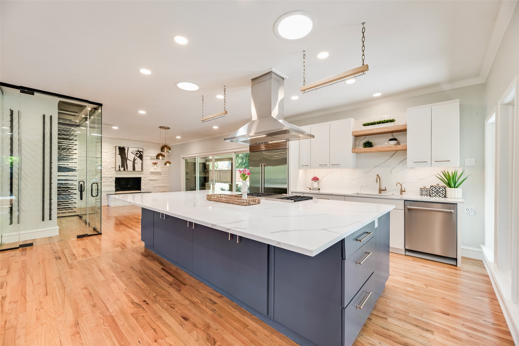 Live your Lake Highlands dream in this expanded mid-century modern home on a tree-lined street that offers great curb appeal. 9747 has a welcoming front entry and a courtyard in this beautifully updated 4-bedroom, 3.5-bath two-story stunner with coveted access to White Rock Elementary. This 3,575 sq. ft. home delivers impressive space, stylish updates, and a flexible layout designed for the way people live today. Inside, an open, light-filled layout showcases warm flooring and generous windows that create an inviting, comfortable feel from the moment you walk in. The main living room flows easily into the kitchen and dining spaces. The C-shaped kitchen features a smart, functional layout that keeps cooking and entertaining easy and enjoyable, highlighted by the expansive island that anchors the space. A spacious dining area connects seamlessly to the kitchen and living areas, with backyard views that make everyday meals and special occasions feel elevated. The primary bedroom is located on the first floor with vaulted ceilings. The oversized laundry room with mud cabinet adds everyday practicality and organization. The generous floor plan easily accommodates guests or a separate retreat for teens, with well-sized bedrooms and updated baths that blend clean lines with timeless touches. Step outside to your own private backyard oasis with a pool and hot tub-perfect for quiet mornings with coffee, grilling on the weekends, or hosting friends and family year-round. The detached 200 sq. ft. pool house with an additional full bath is the ultimate bonus: an ideal home office, gym, art studio, podcast space, or creative hideaway, making the home feel both fun and incredibly functional.