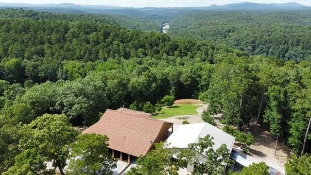 Ozark Vista 40 acres with 2600 sf Barndominium just completed after 4 years. Wood finishes are cut and crafted trees from this property. Dont see many Barndos with this attention to detail. Two ridge top parcels to explore for creeks, bluffs, caves, springs, etc. Open large loft with bath and large finished closet serves as a guest area or 3rd bedroom suite with office area. Large main bedroom suite with nice walkin shower and tub, not to mention sauna in large walkin closet off bath. Main level guest room with guest bath just across the hallway. Wonderful custom kitchen, complete with walkin pantry. Great Room has a grand piano (neg separately) and a free-standing woodburning fireplace for cozy winter days. High ceilings yet still very energy efficient electric bills. Separate 18x18 metal building with overhead door for your fishing boat or UTV with 8x18 extended roof on one side. Garage is 26x30 and has lots of room for workshop and vehicles. Stained concrete floors on main level make this hm pet friendly