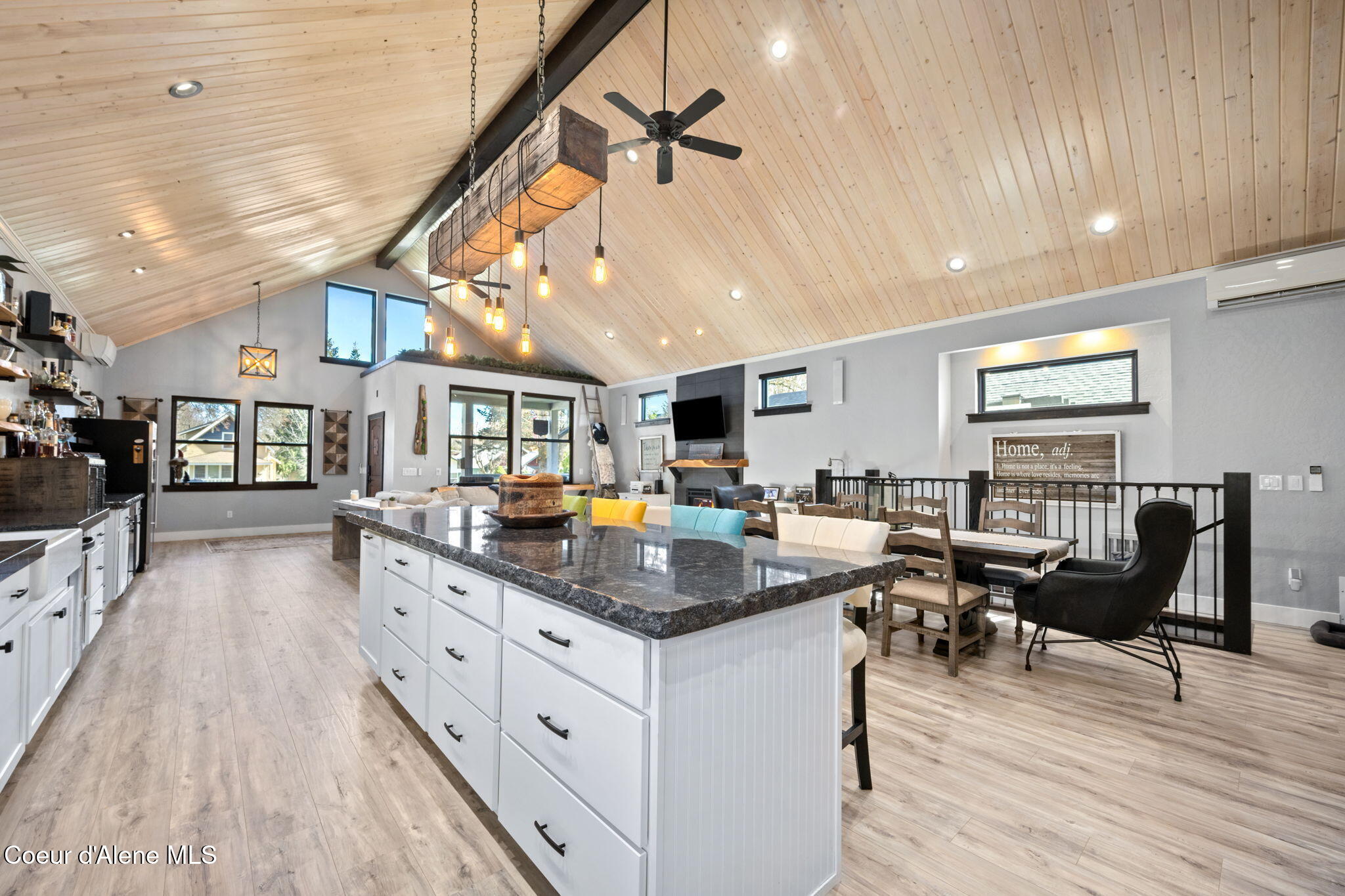 Completely remodeled downtown home. This home was completely renovated down to every corner. The entire front of the home was blown off and the ceiling was lifted to create an entertainers dream. This home is over 3000 sqft with 3 bd 3.5 bath. There is a large private master suite, with a walk in shower, a walk in closet, and access to a private hot tub oasis. The great room ceilings are over 20ft with a large island and open concept. There are multiple living rooms with spacious availability. All of the bathrooms are fully tiled and very comfortable. The garage is heated and fully finished. The cozy front porch has a tv and firepit for downtown evenings. This home is a must see.