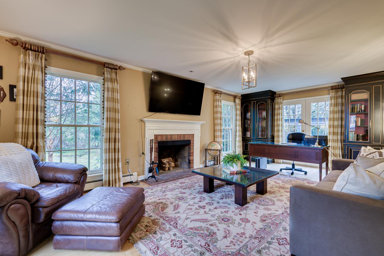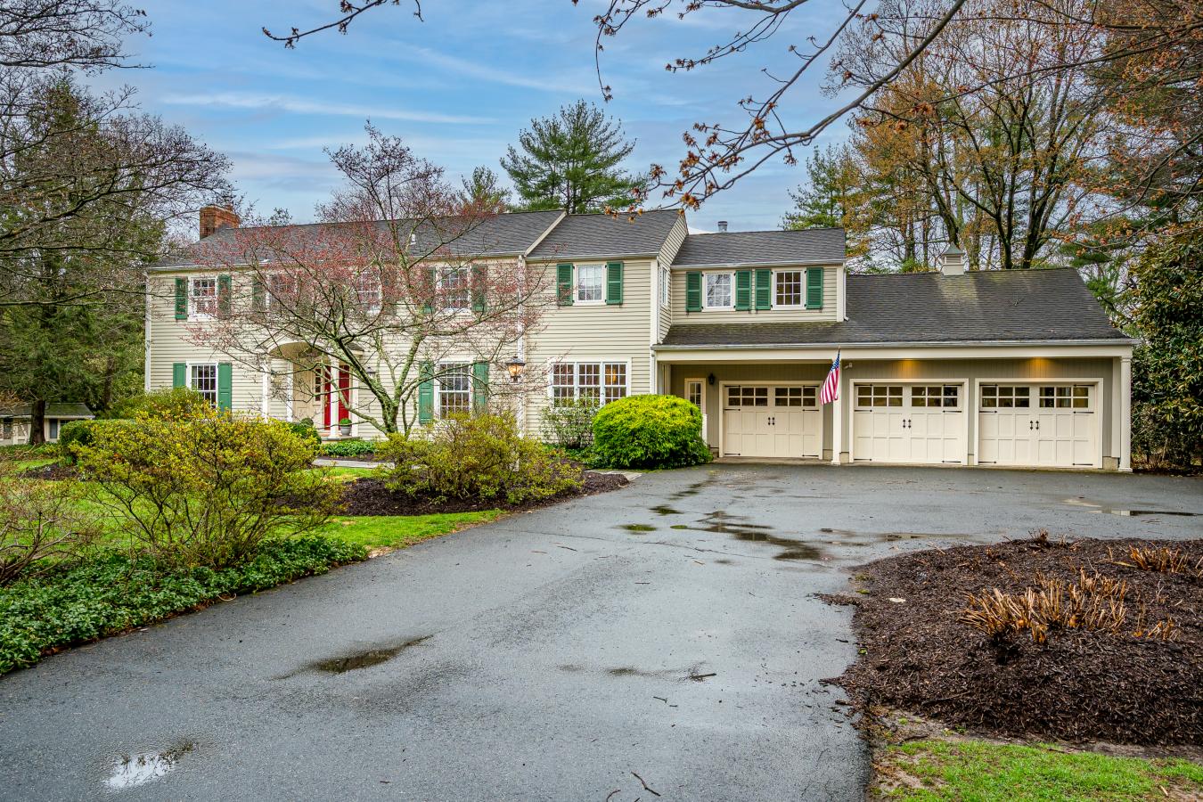 A Timeless Princeton Colonial of Rare Distinction. Designed by the renowned Princeton residential Architect and Ecologist, William Magill Thompson. The addition, years later, off the great room, new primary bedroom, mudroom, expanded garage addition, was also carefully designed by the same great architect who often created under the name Composing frozen music. This beautiful home sits on over 1.3 acres and is surrounded by preserved farmland and Mercer County Park, which includes the extensive Lawrenceville Hopewell Trail system. An apple-picking orchard on one end of the street and Mercer Meadows on the other with a vineyard farm in between. This quiet, non-suburban, farm-like vibe is unique as it offers a rare sense of seclusion yet remains centrally located with easy access to the vibrant shops, dining, and culture of downtown Princeton, as well as major commuter routes. The formal entryway sets a refined tone, whereas the sun-filled side entryway offers spacious closets, tiled flooring, a powder room just off the 1,000 square foot, 3-car garage. Just off the formal entry is the stately living room/study, offering beautifully crafted built-in cabinetry with glass doors, wood-burning fireplace, french doors to the lush yard. Dont miss the chefs kitchen with luxurious Neff cabinets and moldings, lovely peninsula island, high-end appliances (Five Star, Miele, Dacor), appliance garage, plenty of pantry space & storage. The eat-in area of the kitchen overlooks the backyard, and the formal dining room looks over the spacious front lawn. The seemless flow to the added space introduces the oversized family room with soaring ceilings, gas fireplace, window seats, and French doors opening to a generous patio, perfect for entertaining. Off the family room stairs lead to one of the basements; this finished area offers living space perfect for a home office, home gym, or even a 5th bedroom; windows are proper egress. The second floor is a private sanctuary with gorgeous French provincial hardwood floors. The new primary suite impresses with vaulted ceilings. stunning gas-burning fireplace, beautiful windows that frame the backyard grounds, two generous his-and-her closets, outfitted with premium wood Neff cabinetry. Luxurious primary bathroom. Down the hall are 2 bedrooms which share a full renovated bathroom. Original primary bedroom with its own private bathroom and wood-burning fireplace. Home offers garden design by Garden Makers, Roof is Slate Timberline Select Williamsburg Marvin windows and doors, back-up generator, The unfinished basement offers bilco doors to yard, cedar closet to store precious items, a workshop area, 2 Roth double-insulated 275 gallon fuel oil tanks, 4-zone heating and cooling, CAT 5 wiring. Located close to highways, NYC & Philly. Select area private schools, if important. This beautiful home is ready for its new love.