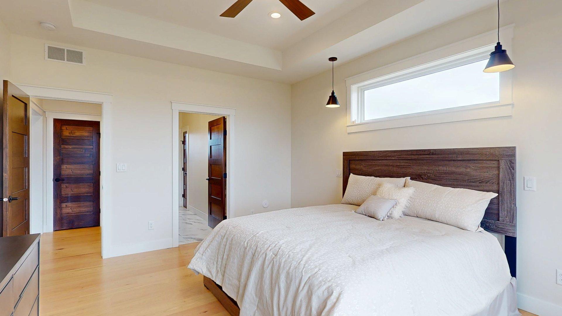 Completed NEW CONSTRUCTION. Welcome to this majestic 2-story home, a true masterpiece nestled on a sprawling 2.44-acre lot. As you enter, be greeted by the elegance of hardwood floors that extend throughout the main floor, perfectly complemented by the luxury of in-floor hydronic heating. The centerpiece of the living room is a stunning 9-foot gas fireplace, with exquisite European plaster & custom mantle, all beneath soaring 12-foot ceilings that enhance the grandeur of the space. The main floor boasts a spacious primary suite, offering ultimate convenience and privacy. Ascend to the upper level to discover four large bedrooms and a charming sitting area, ideal for relaxation. This home seamlessly blends sophistication with comfort, providing ample space for both entertaining and everyday living. With its impeccable design and premium features, this residence promises an unparalleled lifestyle in a serene, expansive setting. Experience the perfect balance of luxury and tranquility in this remarkable home.