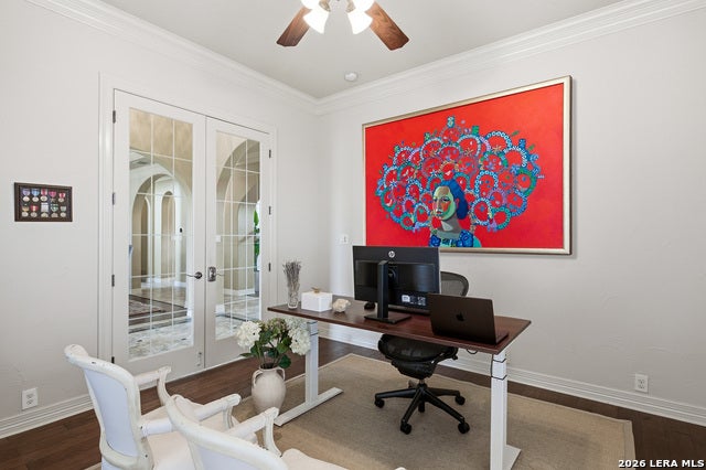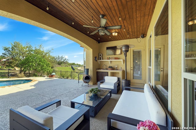 SWEEPING ELEVATED VIEWS! Hilltop home sitting on top of a plateau with flat area for basketball pool and views galore!! Home has all the extras: formal study, dual master and cabana bath on the first floor, upstairs boast game, media and exercise rooms! Stunning Mediterranean home w/tons of character. Lush landscape & long driveway. Majestic front French doors, 8 ft interior doors. Walls of windows & lots of arches. High ceilings. Gourmet Kitchen. Oversized laundry w/ utility sink. Second master with and en-suite full bath with walk in shower big closets and wood floors! Master suite boasts dual custom closets; dual shower and jetted tub. Office and guest bedroom down! 3 bd rooms, 2 baths, Exercise room, game room w/ wet bar and media room upstairs. Beautiful pool w/ cabana bath outside. Freshly painted interior and exterior and kitchen has gas stub if buyer prefers a gas cooktop! Exercise room is an addition and is not included in square footage so home is another 250 more sq feet!House Improvements New AC fall 2025 New water heaters summer 2023 New cooktop 2022 New ovens 2021 New pool filter fall 2025 New pool pumps Added workout room Extended driveway New cabinets for sub zero fridge and sub zero fridge Added soft close drawers Added cabinet separator above oven New dishwasher 2024 New laundry sink and faucet Movie room audio all newly installed Digital AC controls for all units