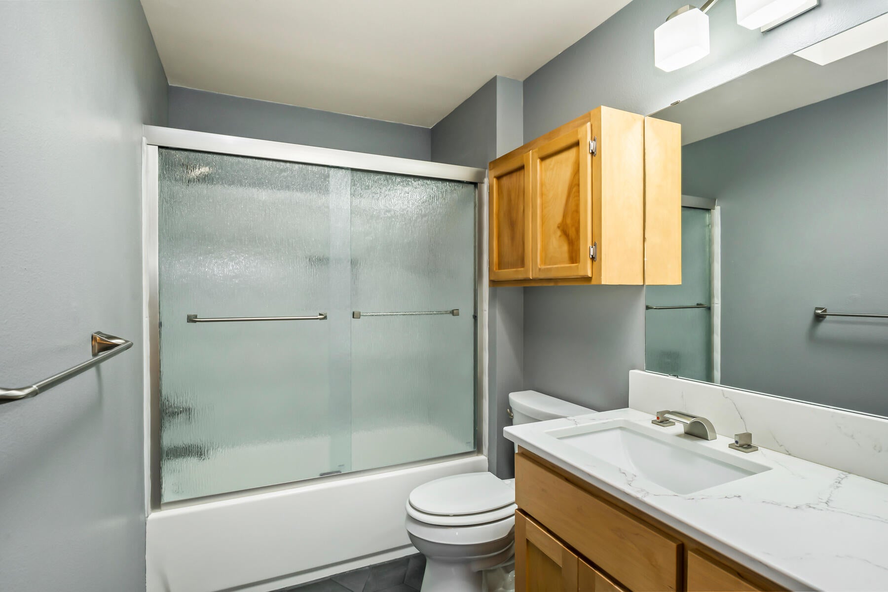 Twin Palms Cottage is a private oasis offering pleasant surprises around every corner. Mature, well-manicured landscaping greets you as you pull into the stamped concrete driveway with a two-car garage and guest parking. As you step inside, you find easy-care, wood-look tiles, crown molding, plantation shutters, an electric fireplace with a stacked stone surround, and an open floor plan that leads into the spacious dining room and remodeled kitchen. The three bedrooms in the main house have carpet, ceiling fans, large closets, and plantation shutters. When you step from the mud room to the backyard, this is where the private oasis feeling really begins with low-maintenance landscaping, a covered porch with two ceiling fans and gas fire pit, an outdoor television, a separately fenced pool and spa surrounded by a patio for entertaining, and a separately fenced yard with a workshop or studio, potting area, patio with awning, and the entrance to the one-bedroom, one bathroom ADU with full kitchen and living area..