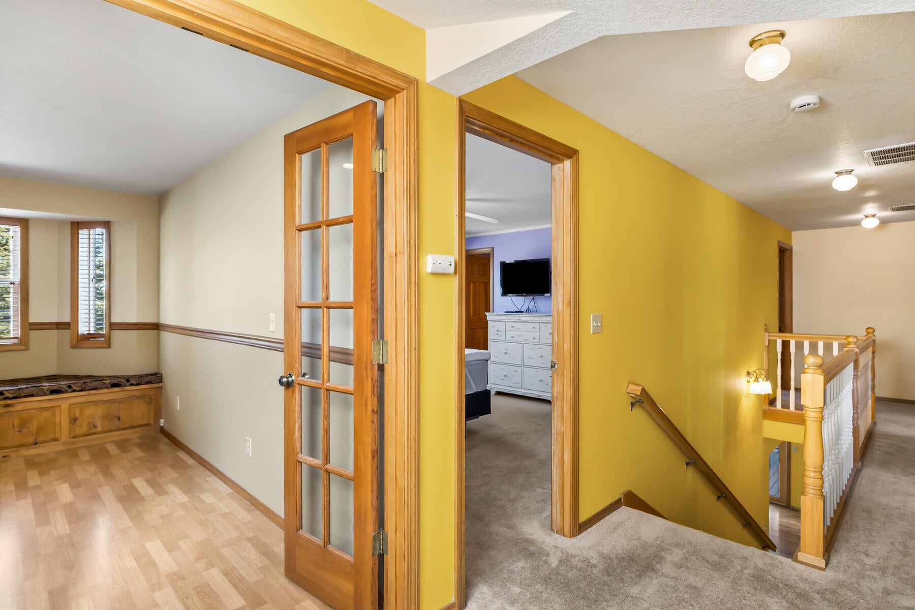 Set on nearly 2.5 fully-fenced, park-like acres, this exceptional property is just over ten minutes from downtown Bend, yet feels worlds away. Beautifully manicured grounds feature mature trees, a pond and creek crossed by a footbridge, a gazebo, a greenhouse, a chicken coop, and 2 irrigated acres. Extensive front and rear Trex decking extends the living space outdoors, with direct deck access from the kitchen for easy indoor/outdoor dining. Inside, the main level features a light-filled living room, a dining room with pellet stove, and a bright kitchen with quartz countertops, stainless appliances, a spacious island, and a breakfast nook with bay window seat. The primary suite, set on its own wing, offers heated bathroom floors, a soaking tub, and a walk-in closet, while a separate in-law suite includes a fireplace, deck access, and en suite bath. Additional features include a skylit home office, laundry, flexible bedroom layout, and a 2-car garage with heated workshop and storage.
