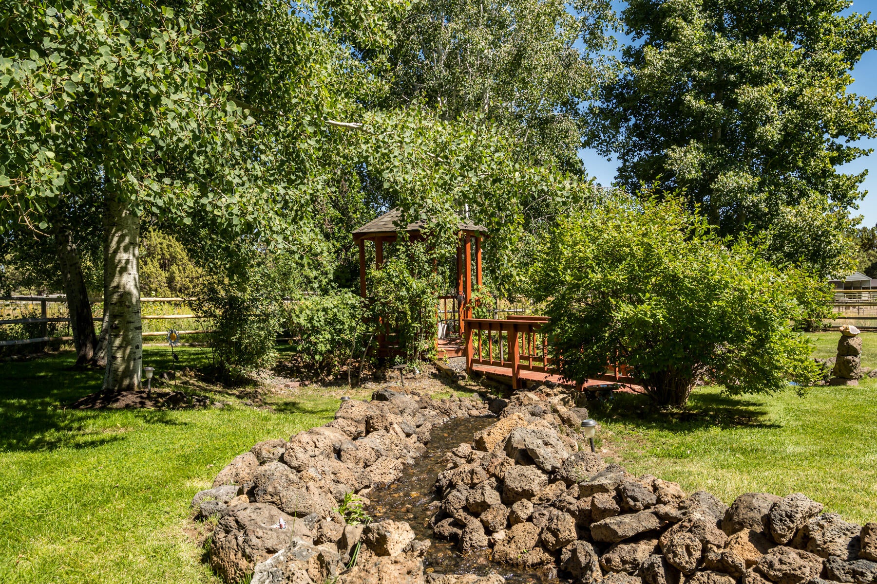 Set on nearly 2.5 fully-fenced, park-like acres, this exceptional property is just over ten minutes from downtown Bend, yet feels worlds away. Beautifully manicured grounds feature mature trees, a pond and creek crossed by a footbridge, a gazebo, a greenhouse, a chicken coop, and 2 irrigated acres.