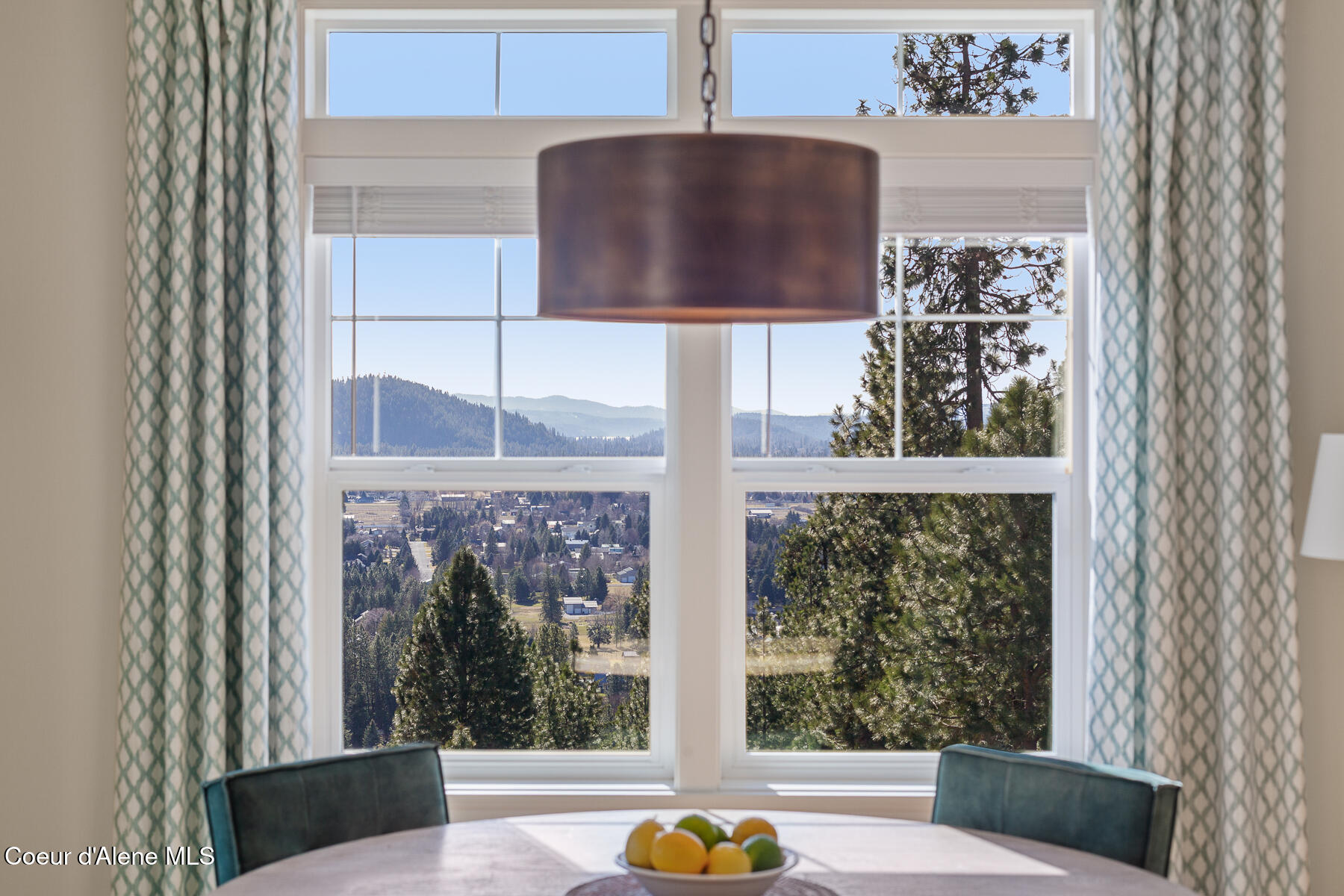 Intentionally built with uncompromising quality, this immaculate Cape Cod-inspired home captures panoramic views of Canfield Mountain, the city lights, and distant Lake Coeur d'Alene. Ideally situated in a neighborhood of exclusively custom homes on spacious lots, with close proximity to golf courses, the lake and town.