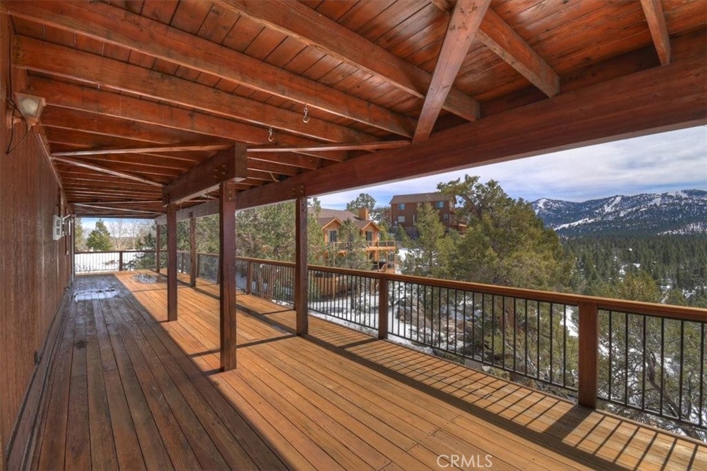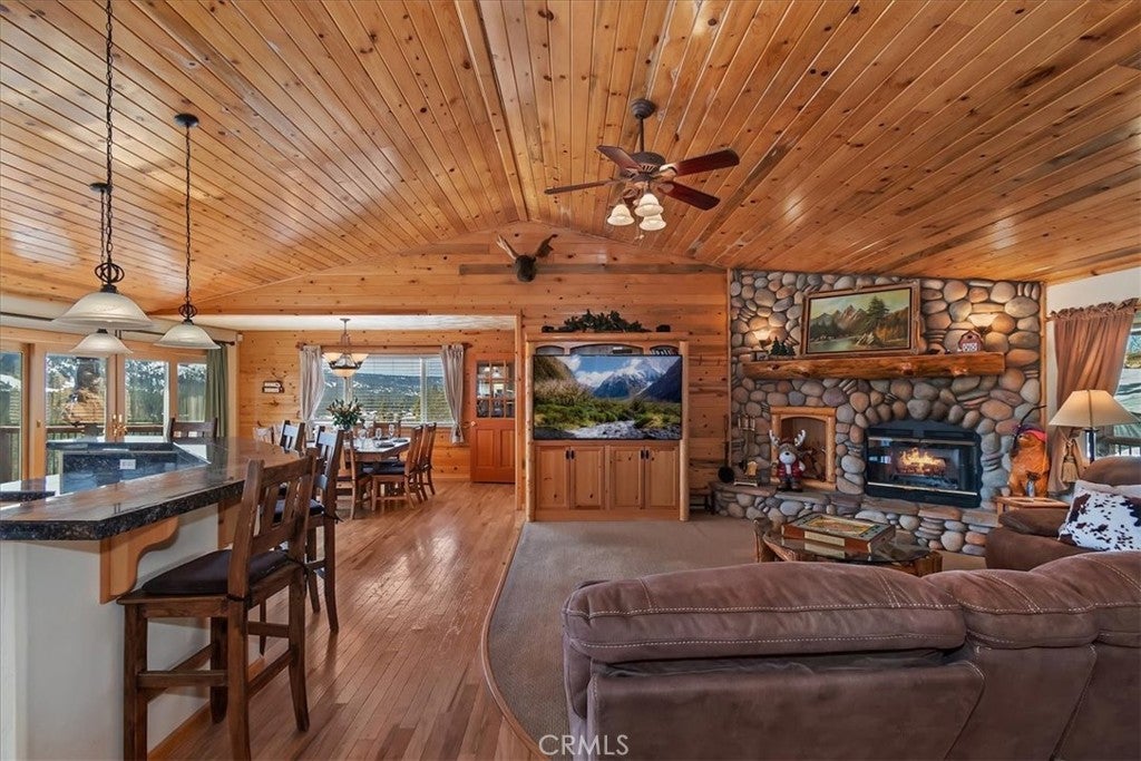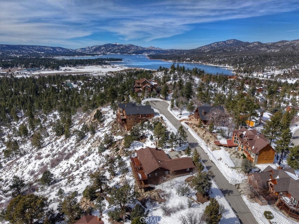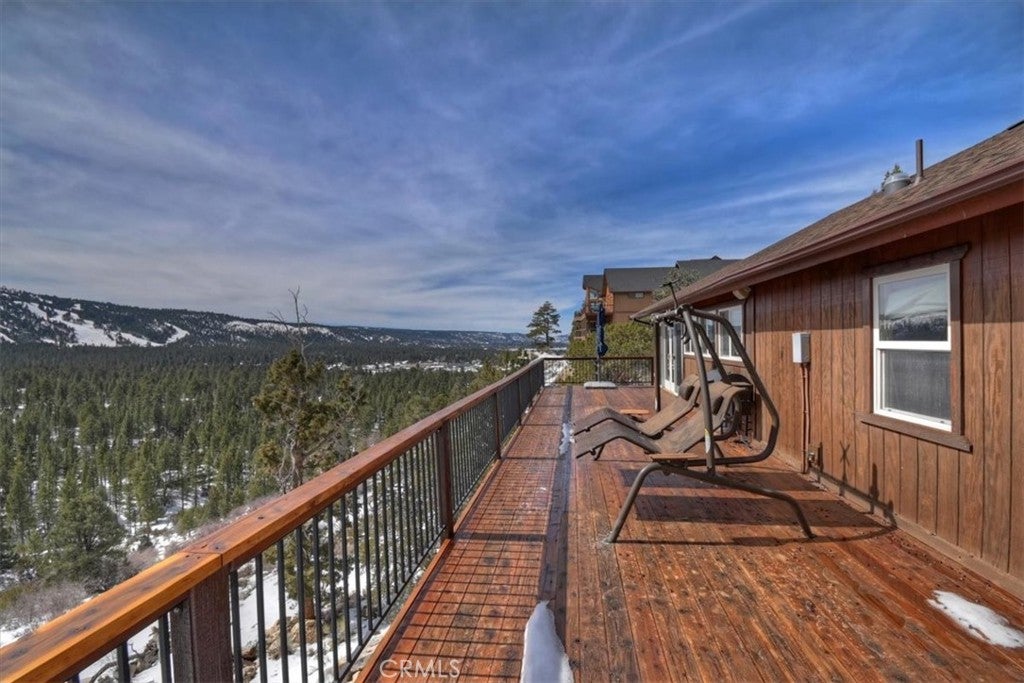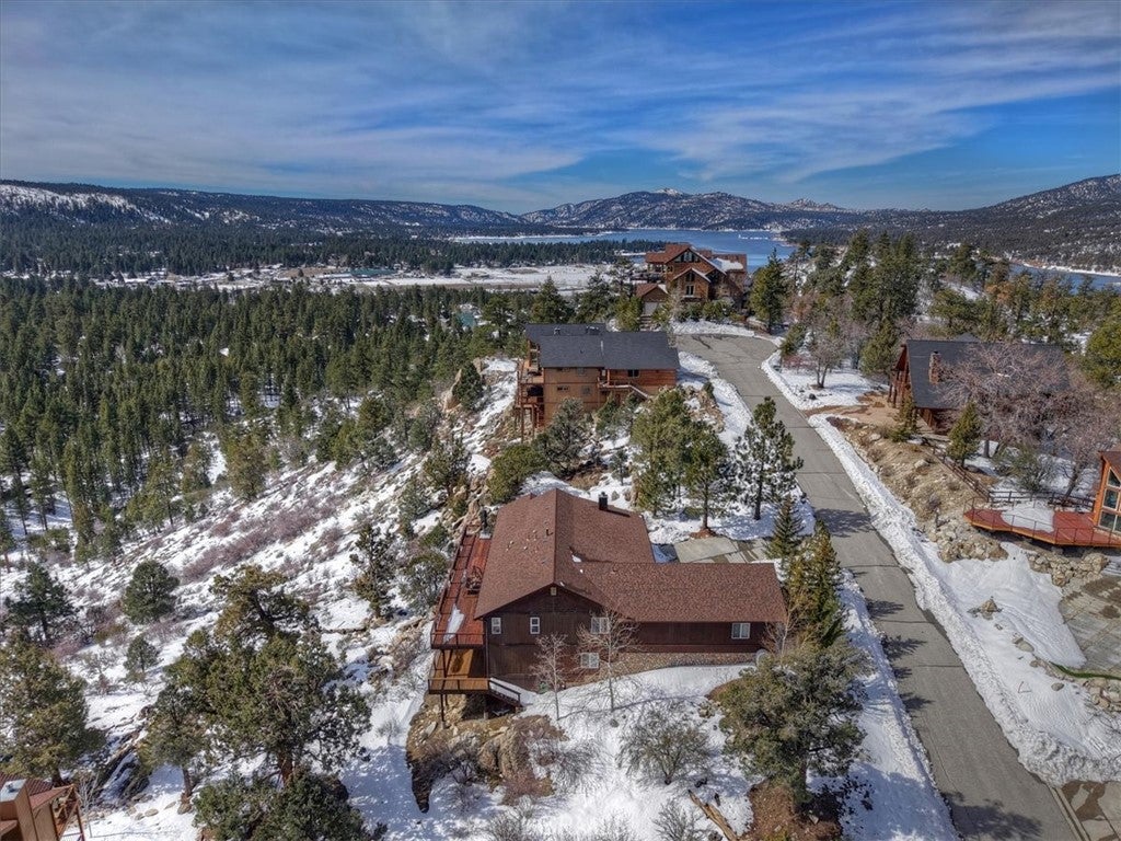 Perched at the top of prestigious Castle Glen on Pegasus Way, this luxury retreat captures breathtaking ski slope views of both Bear Mountain and Snow Summit. Designed with a reverse floor plan to maximize the scenery, the home features vaulted tongue-and-groove ceilings and expansive upper and lower decks overlooking unbuildable forest with a peek of the lake.