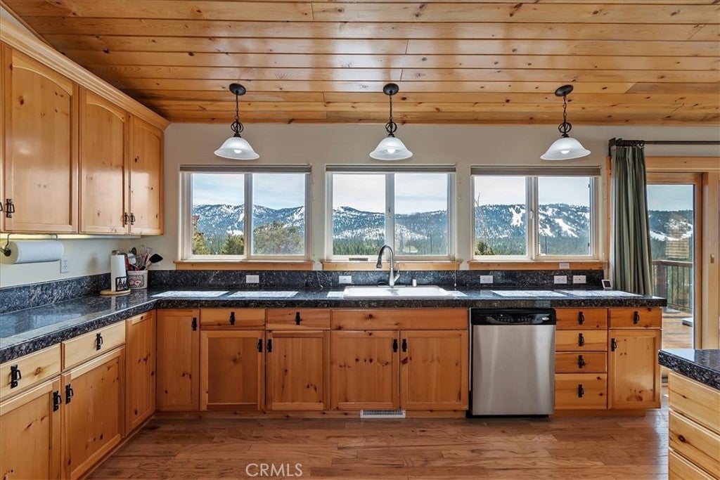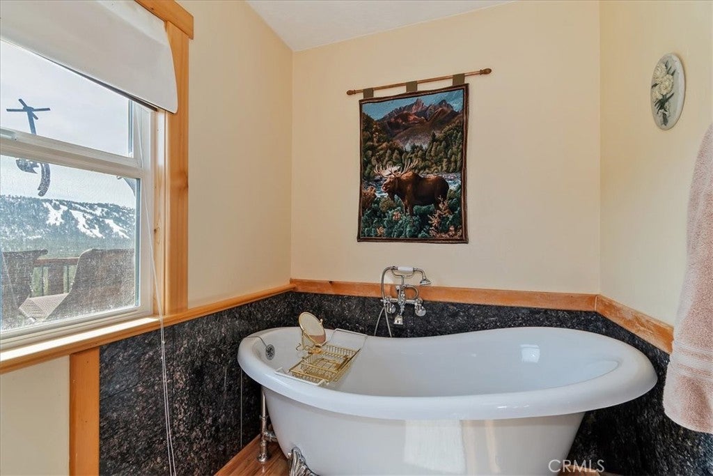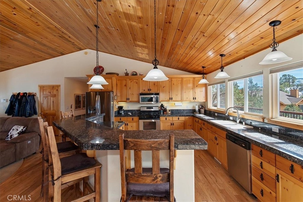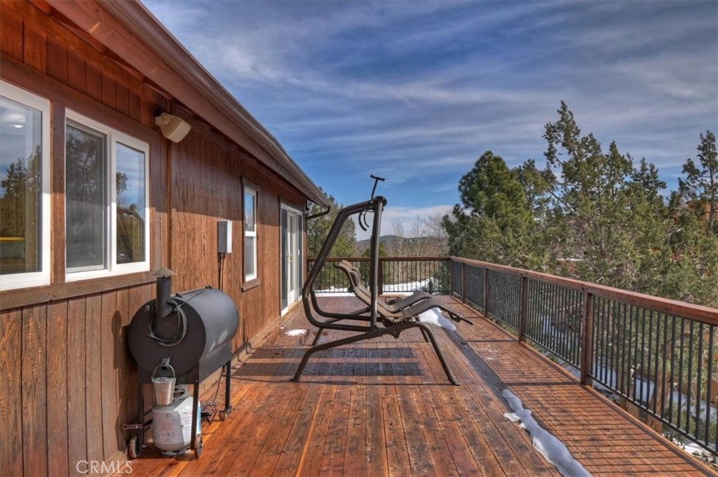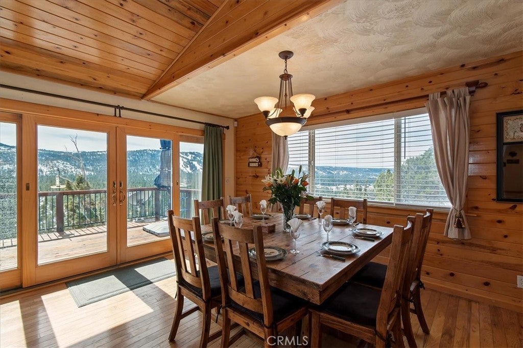Perched at the top of prestigious Castle Glen on Pegasus Way, this luxury retreat captures breathtaking ski slope views of both Bear Mountain and Snow Summit. Designed with a reverse floor plan to maximize the scenery, the home features vaulted tongue-and-groove ceilings and expansive upper and lower decks overlooking unbuildable forest with a peek of the lake.
