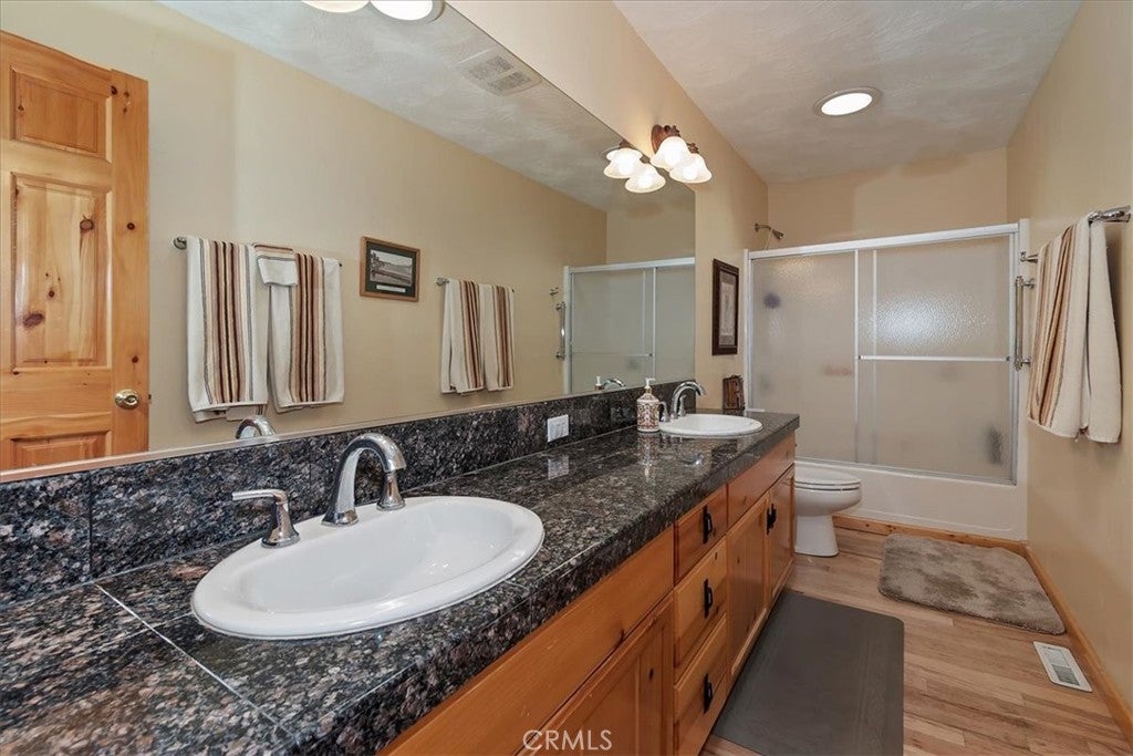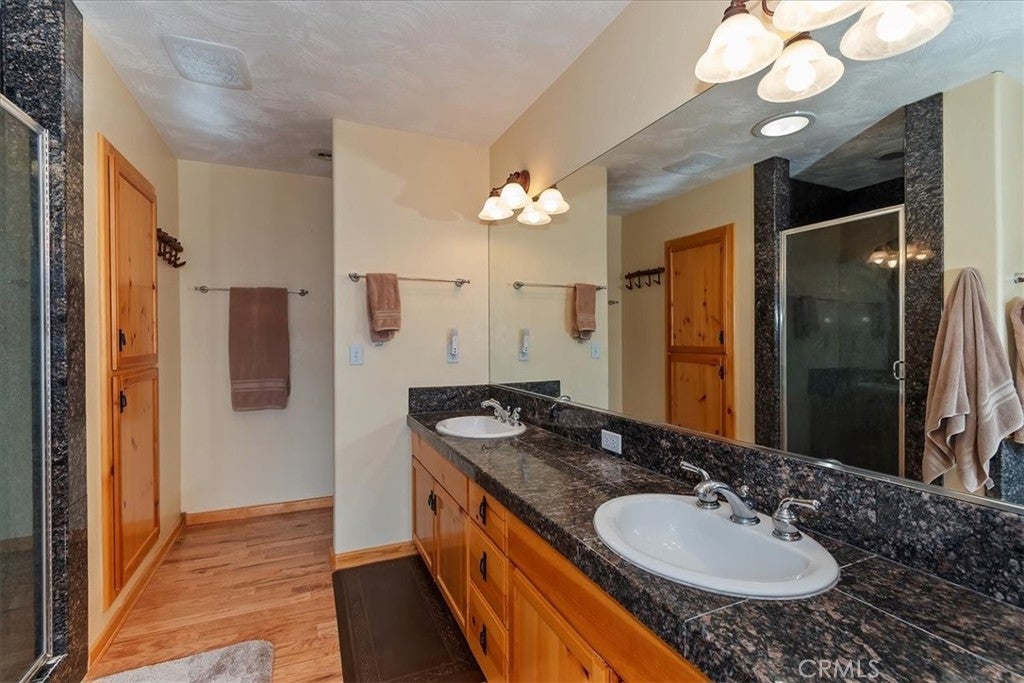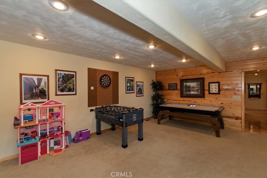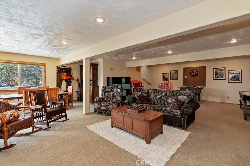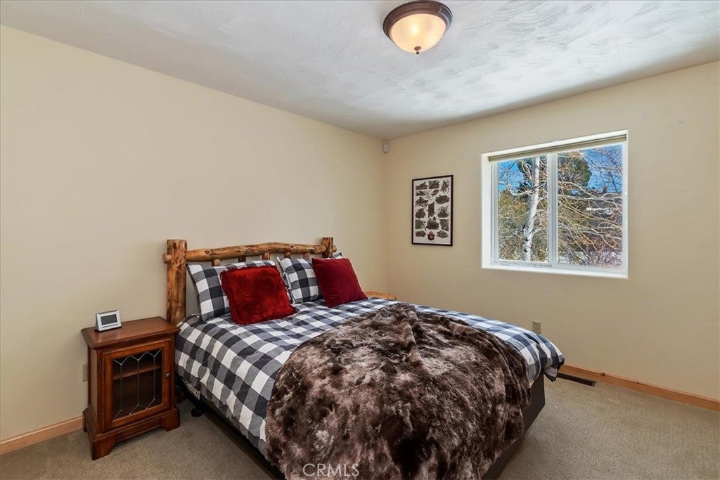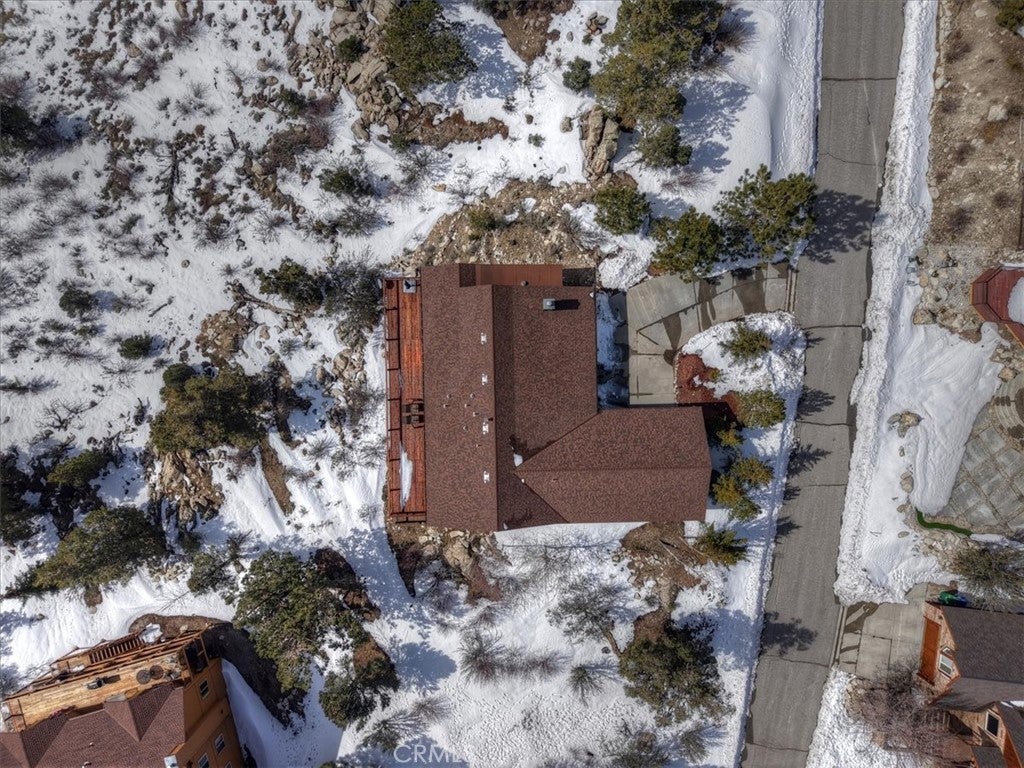 Perched at the top of prestigious Castle Glen on Pegasus Way, this luxury retreat captures breathtaking ski slope views of both Bear Mountain and Snow Summit. Designed with a reverse floor plan to maximize the scenery, the home features vaulted tongue-and-groove ceilings and expansive upper and lower decks overlooking unbuildable forest with a peek of the lake. Offering 5 bedrooms plus an additional office and 4 full bathrooms, the layout is ideal for hosting and privacy alike. The main level includes 3 bedrooms and 2 baths, while the lower level offers 2 bedrooms, an office, and 2 baths. Two spacious primary suites feature walk-in closets and direct deck access. Each level is complete with its own living room, fireplace, and laundry room. Dual forced-air heaters and dual water heaters provide comfort and efficiency year-round. The kitchen is appointed with granite countertops and stainless-steel appliances. Turn-key and thoughtfully designed, this mountain estate also includes a way oversized two-car garageperfect for vehicles, toys, and gear.