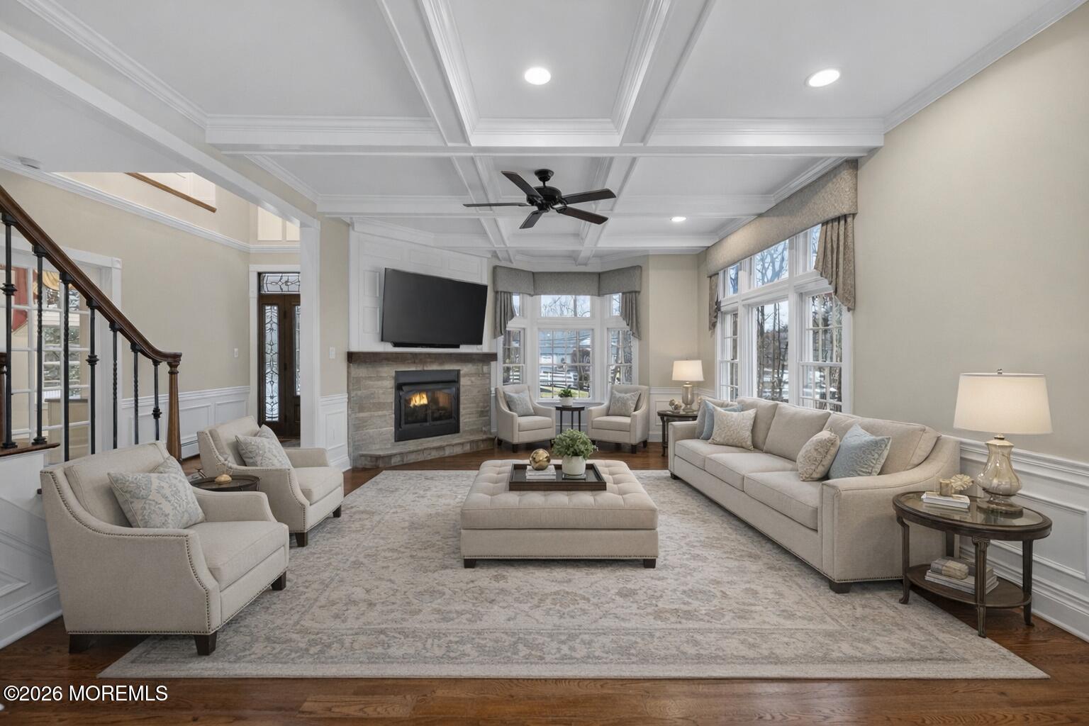 Exceptional custom contemporary in prestigious Marlboro Woods Estates offering 5 bedrooms and 4.5 baths in one of Marlboros most sought-after neighborhoods. A dramatic two-story entry with porcelain flooring opens to a bright, airy layout with vaulted formal living room, sunken family room with Gas Fireplace, and walls of windows overlooking the private backyard.